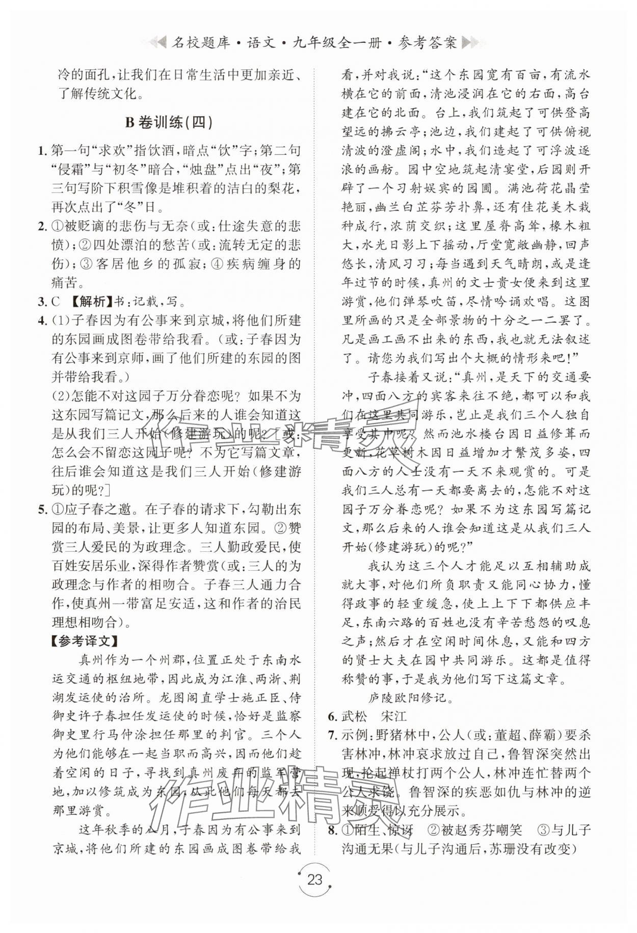 注:目前有些书本章节名称可能整理的还不是很完善,但都是按照顺序排列的,请同学们按照顺序仔细查找。练习册 2025年名校题库九年级语文全一册人教版 答案主要是用来给同学们做完题方便对答案用的,请勿直接抄袭。