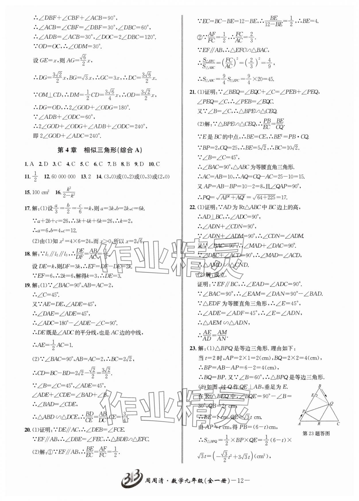 注:目前有些书本章节名称可能整理的还不是很完善,但都是按照顺序排列的,请同学们按照顺序仔细查找。练习册 2025年周周清检测九年级数学全一册浙教版 答案主要是用来给同学们做完题方便对答案用的,请勿直接抄袭。