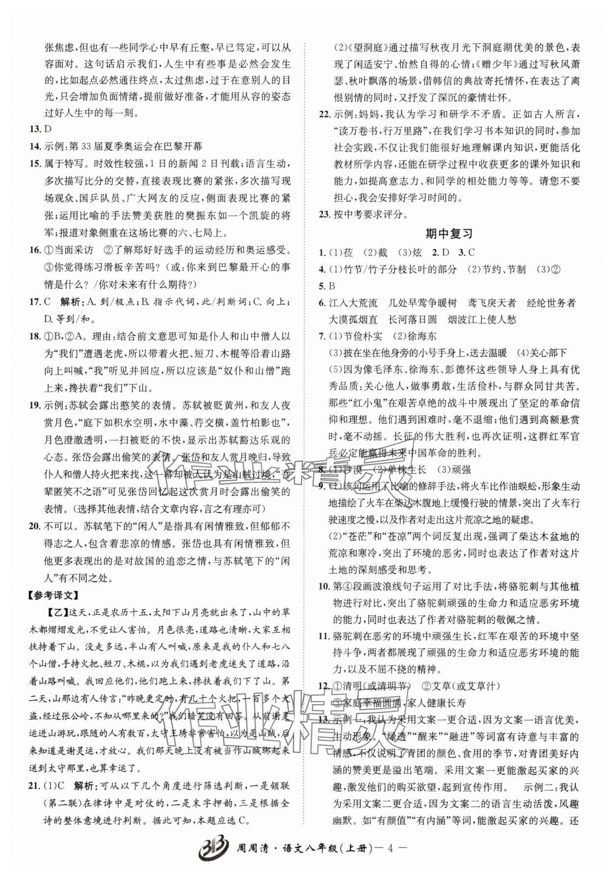 注:目前有些书本章节名称可能整理的还不是很完善,但都是按照顺序排列的,请同学们按照顺序仔细查找。练习册2025年周周清检测八年级语文上册人教版答案主要是用来给同学们做完题方便对答案用的,请勿直接抄袭。