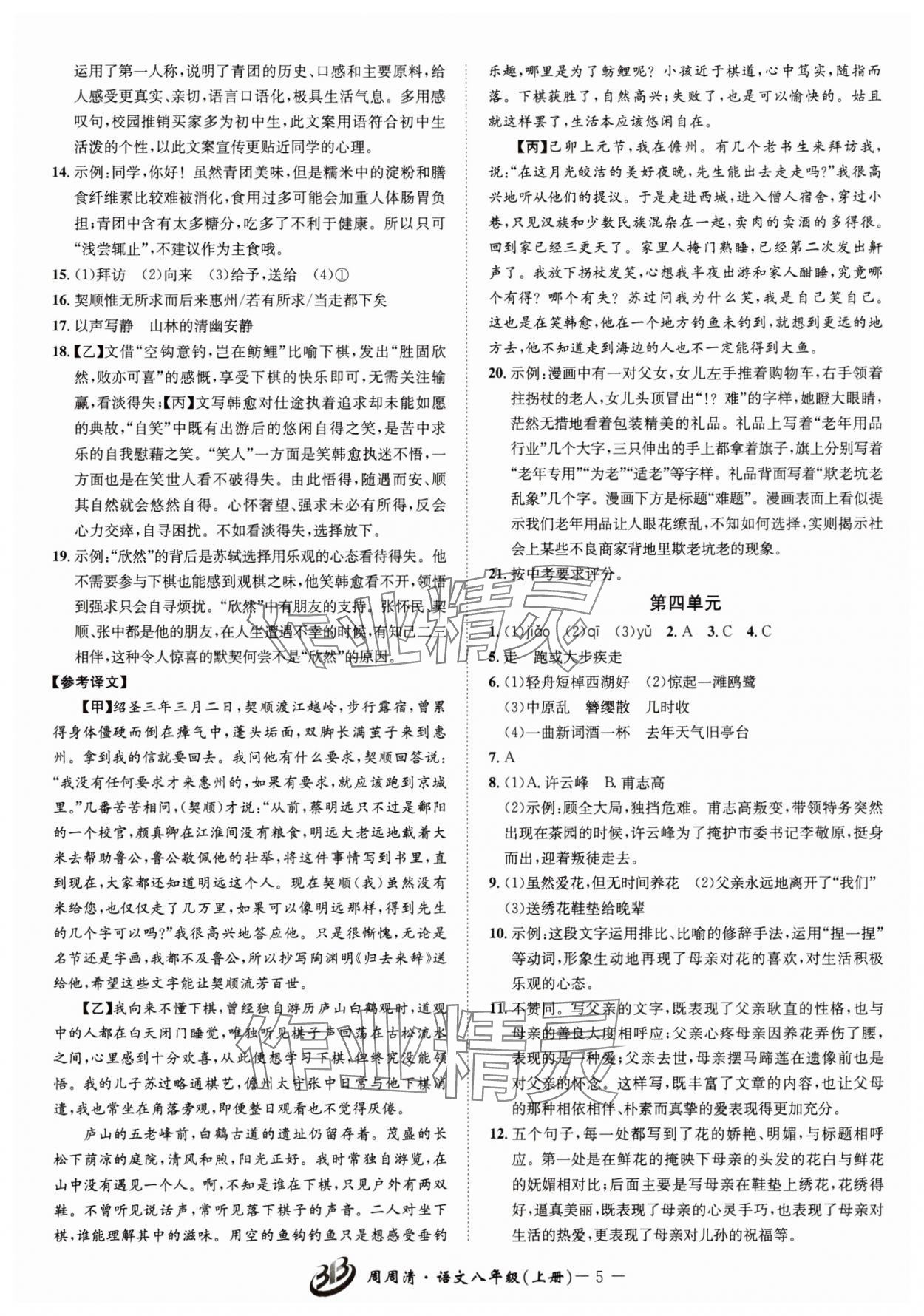 2025年周周清检测八年级语文上册人教版 参考答案第5页