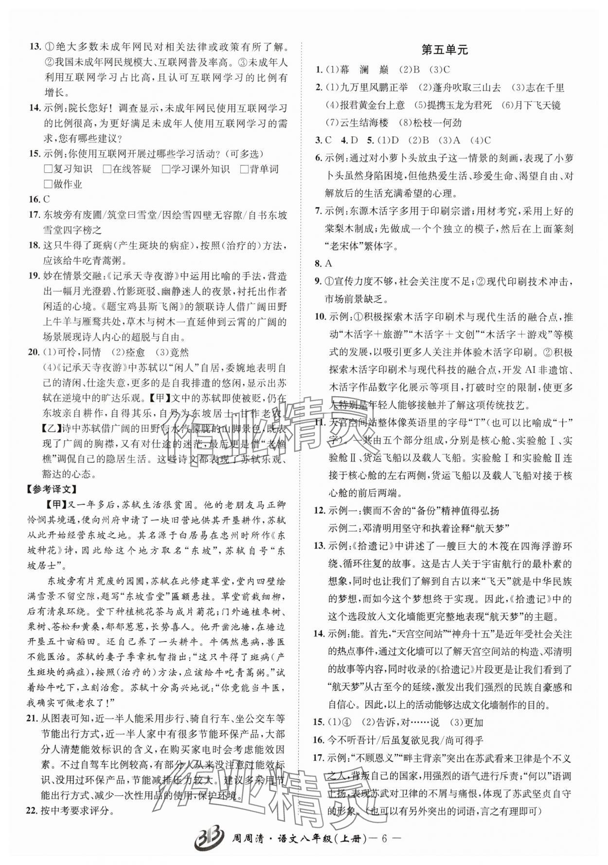 注:目前有些书本章节名称可能整理的还不是很完善,但都是按照顺序排列的,请同学们按照顺序仔细查找。练习册2025年周周清检测八年级语文上册人教版答案主要是用来给同学们做完题方便对答案用的,请勿直接抄袭。