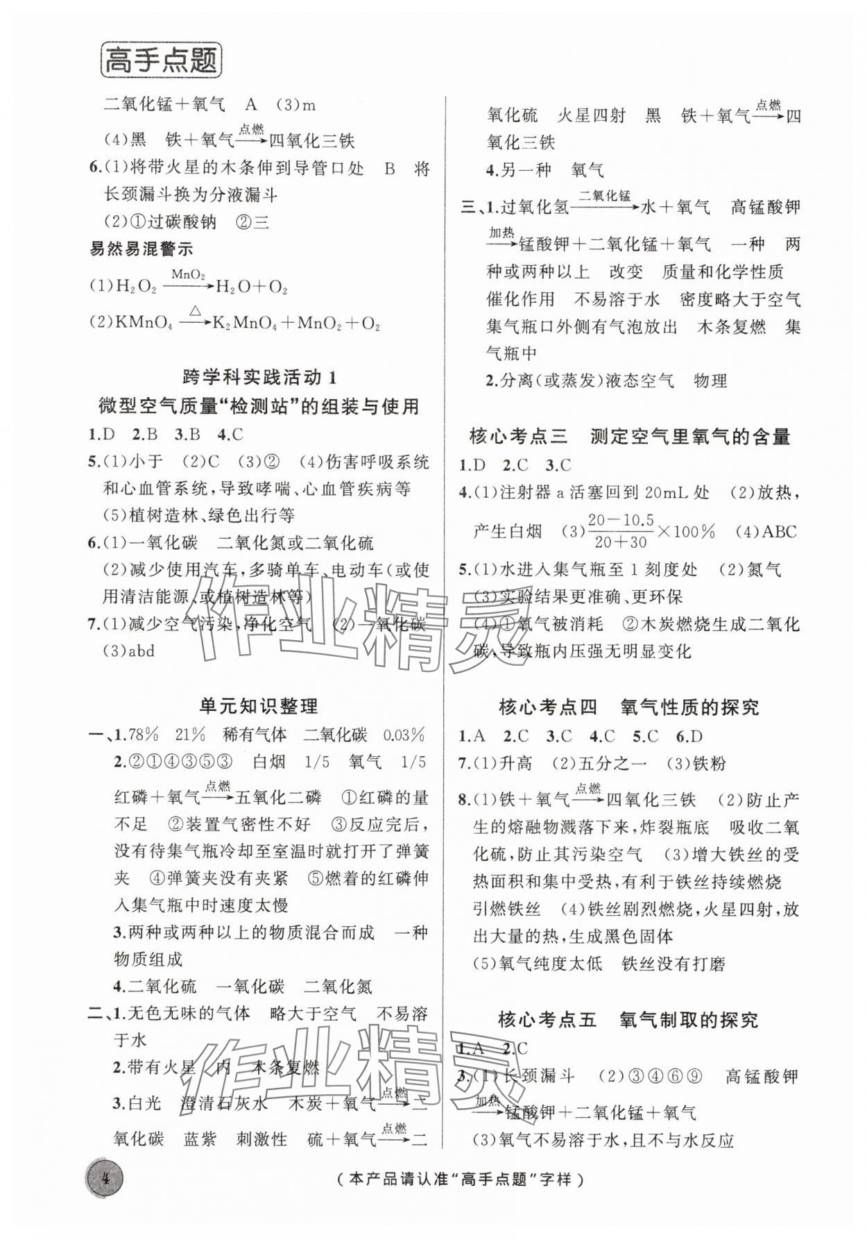 注:目前有些书本章节名称可能整理的还不是很完善,但都是按照顺序排列的,请同学们按照顺序仔细查找。练习册 2025年高手点题作业本九年级化学上册人教版 答案主要是用来给同学们做完题方便对答案用的,请勿直接抄袭。