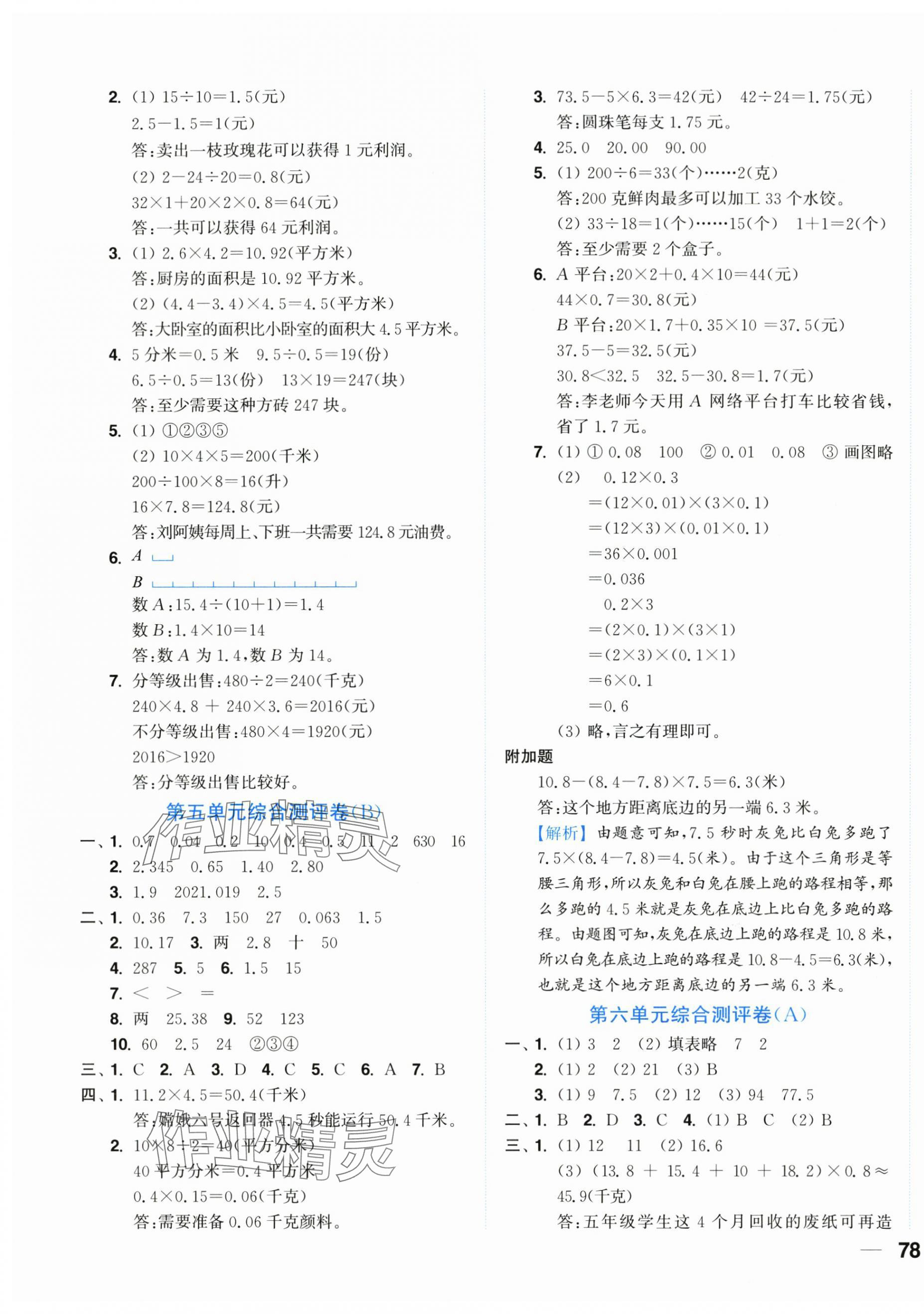 2025年小题狂做全程测评卷五年级数学上册苏教版