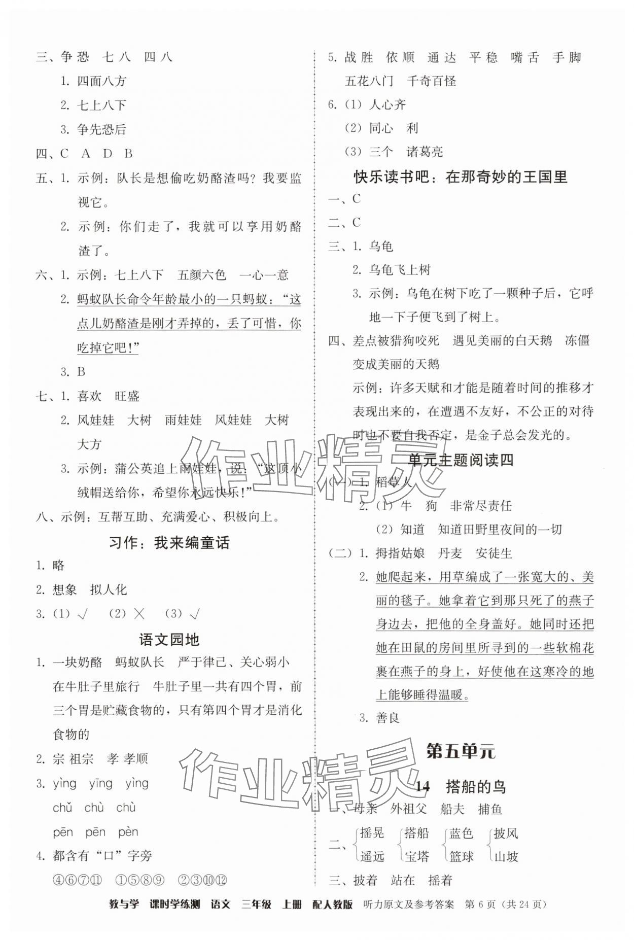 注:目前有些书本章节名称可能整理的还不是很完善,但都是按照顺序排列的,请同学们按照顺序仔细查找。练习册 2025年教与学课时学练测三年级语文上册人教版 答案主要是用来给同学们做完题方便对答案用的,请勿直接抄袭。