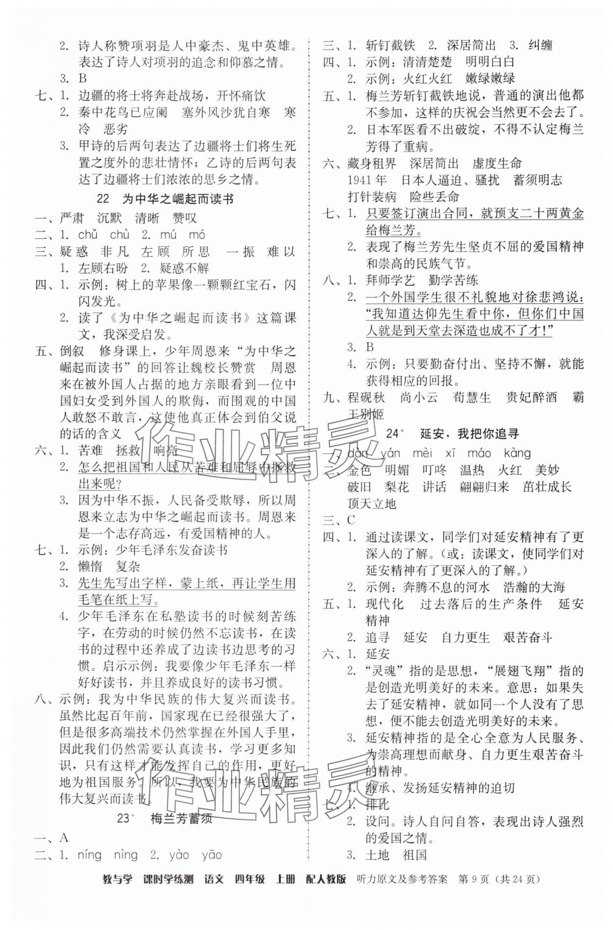 注:目前有些书本章节名称可能整理的还不是很完善,但都是按照顺序排列的,请同学们按照顺序仔细查找。练习册 2025年教与学课时学练测四年级语文上册人教版 答案主要是用来给同学们做完题方便对答案用的,请勿直接抄袭。