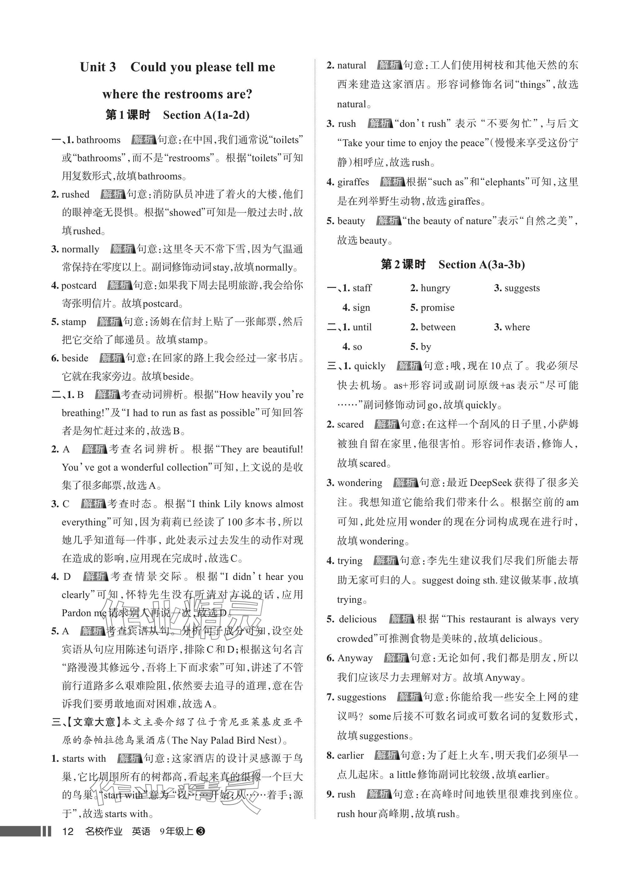 注:目前有些书本章节名称可能整理的还不是很完善,但都是按照顺序排列的,请同学们按照顺序仔细查找。练习册 2025年名校作业九年级英语上册人教版武汉专版 答案主要是用来给同学们做完题方便对答案用的,请勿直接抄袭。