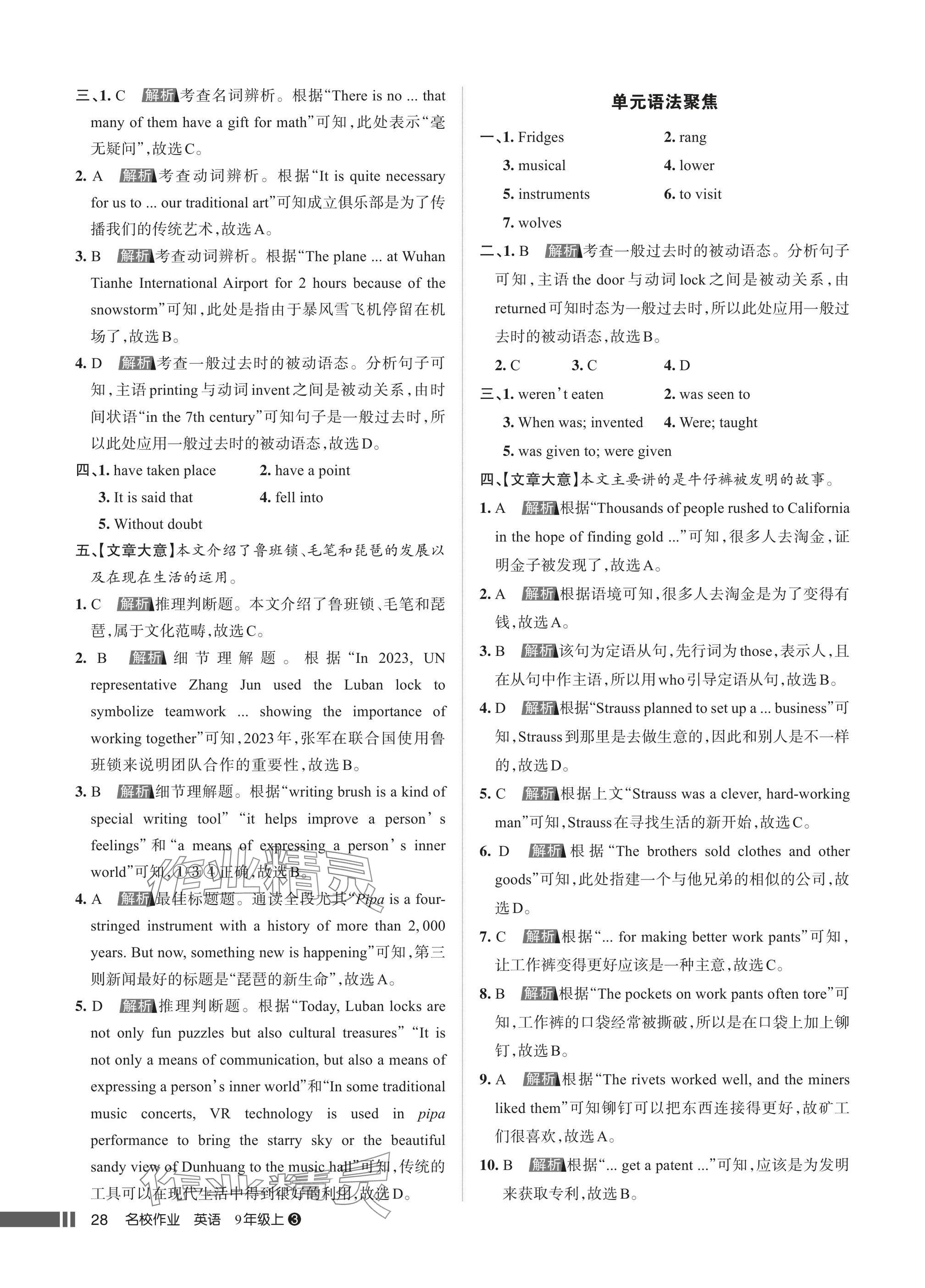 注:目前有些书本章节名称可能整理的还不是很完善,但都是按照顺序排列的,请同学们按照顺序仔细查找。练习册 2025年名校作业九年级英语上册人教版武汉专版 答案主要是用来给同学们做完题方便对答案用的,请勿直接抄袭。