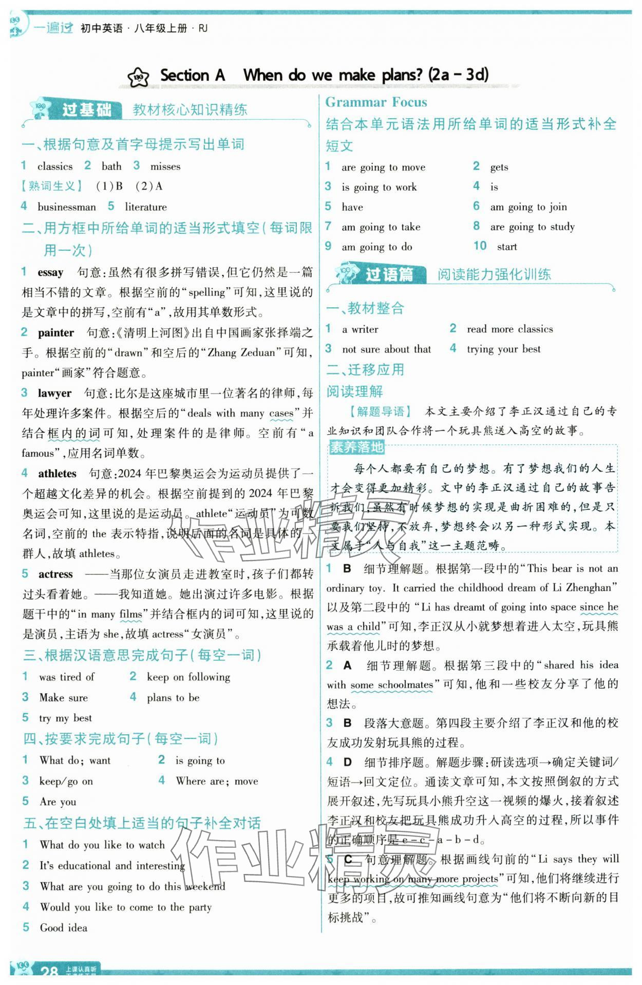 注:目前有些书本章节名称可能整理的还不是很完善,但都是按照顺序排列的,请同学们按照顺序仔细查找。练习册 2025年一遍过八年级英语上册人教版河南专版 答案主要是用来给同学们做完题方便对答案用的,请勿直接抄袭。