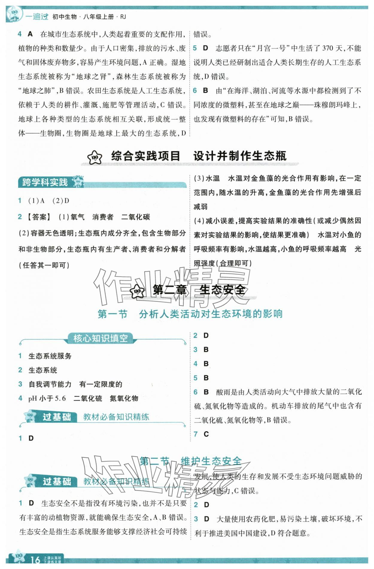 注:目前有些书本章节名称可能整理的还不是很完善,但都是按照顺序排列的,请同学们按照顺序仔细查找。练习册 2025年一遍过八年级生物上册人教版 答案主要是用来给同学们做完题方便对答案用的,请勿直接抄袭。