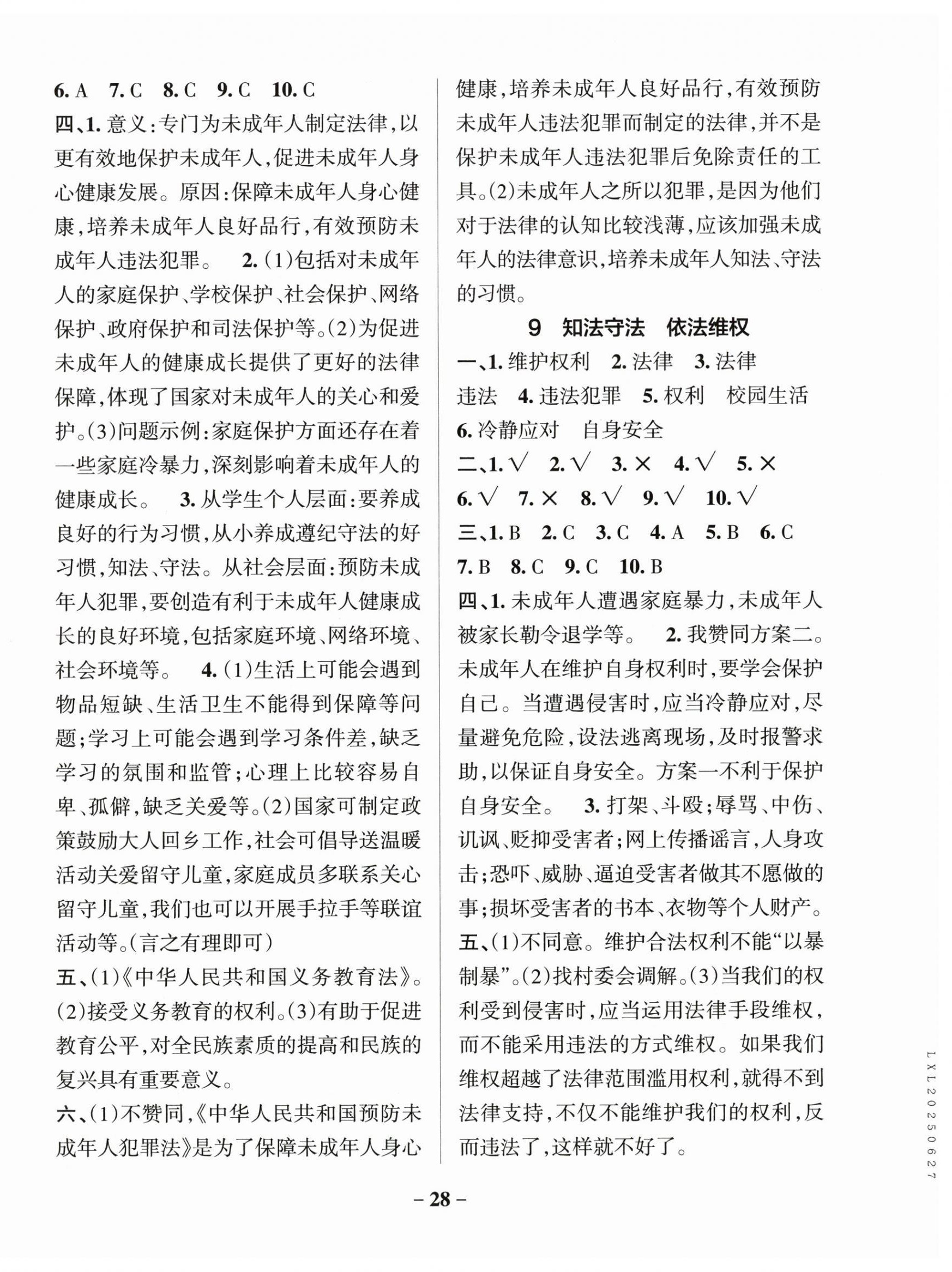 注:目前有些书本章节名称可能整理的还不是很完善,但都是按照顺序排列的,请同学们按照顺序仔细查找。练习册 2025年小学学霸作业本六年级道德与法治上册人教版 答案主要是用来给同学们做完题方便对答案用的,请勿直接抄袭。