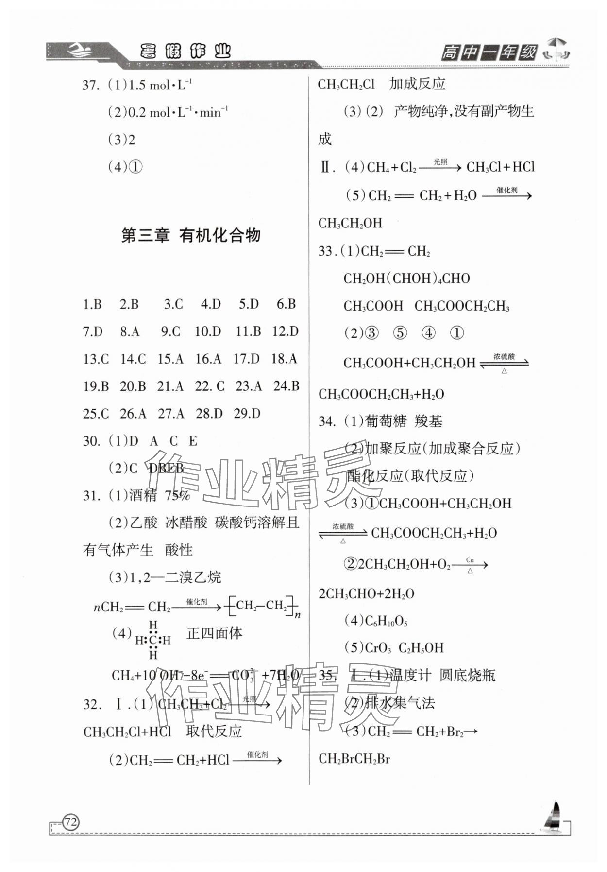 注:目前有些书本章节名称可能整理的还不是很完善,但都是按照顺序排列的,请同学们按照顺序仔细查找。练习册 2025年暑假作业甘肃教育出版社高一化学 答案主要是用来给同学们做完题方便对答案用的,请勿直接抄袭。