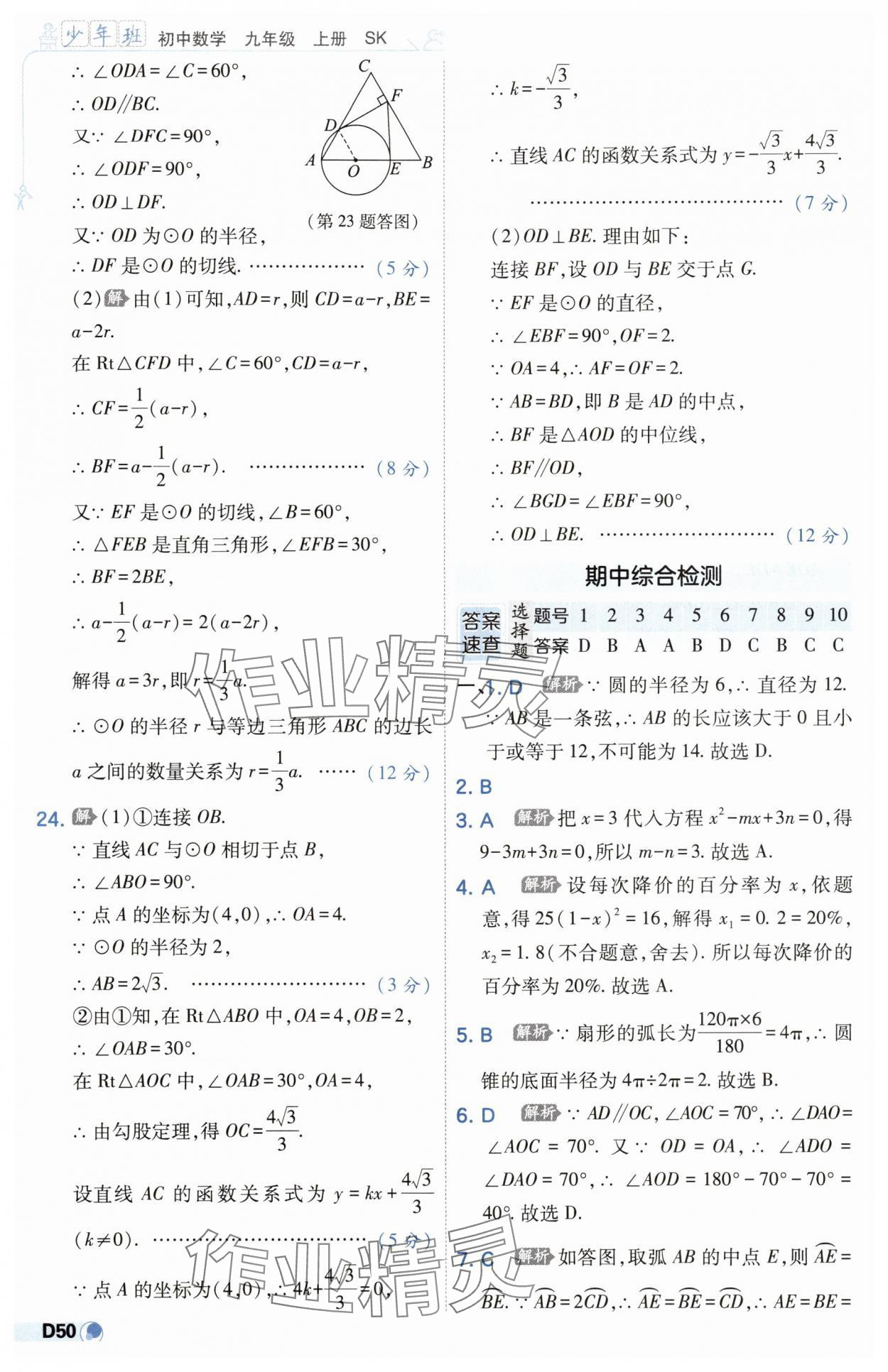 注:目前有些书本章节名称可能整理的还不是很完善,但都是按照顺序排列的,请同学们按照顺序仔细查找。练习册 2025年少年班九年级数学上册苏科版 答案主要是用来给同学们做完题方便对答案用的,请勿直接抄袭。