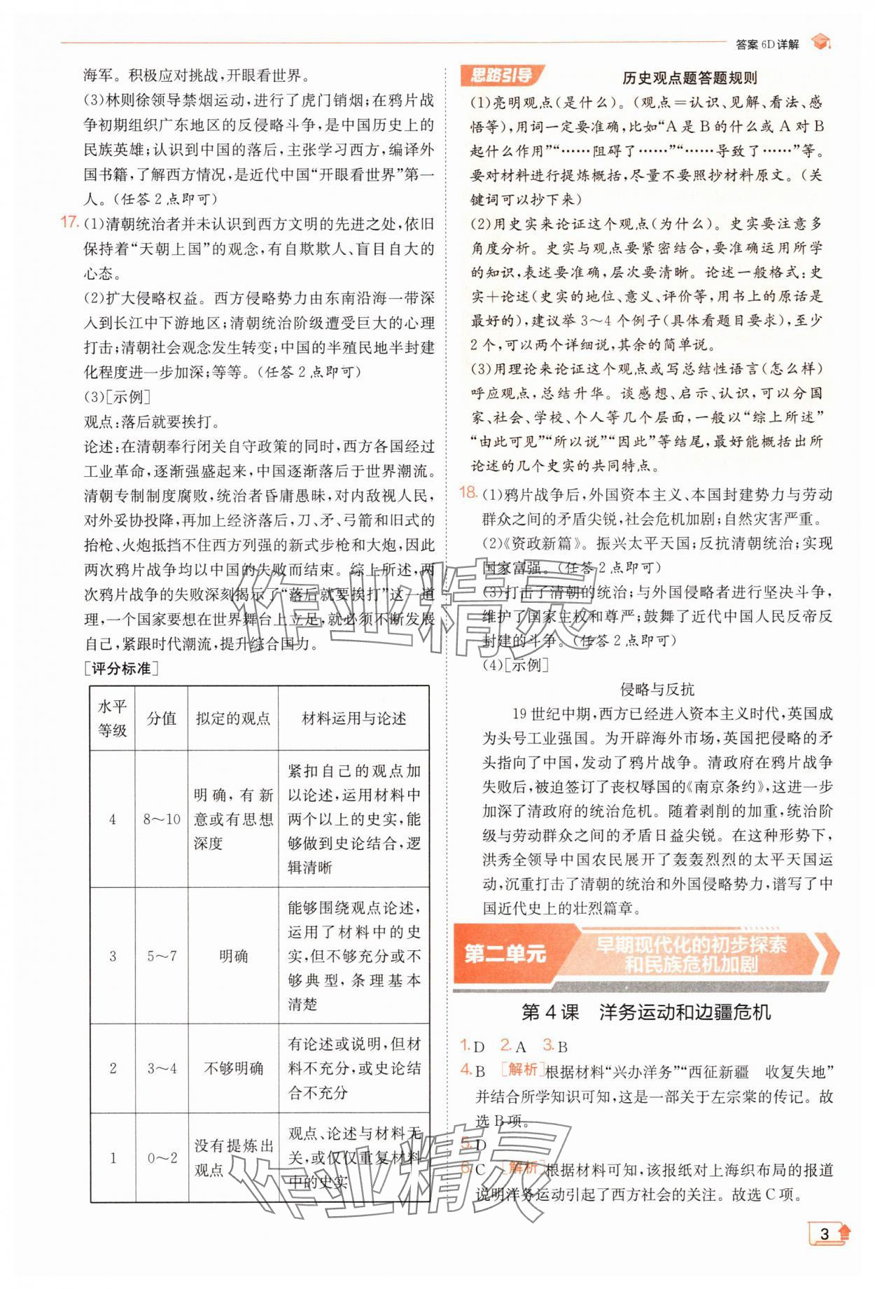精英家教网> 2025年实验班提优训练八年级历史上册人教版 > 第3页 参考答案