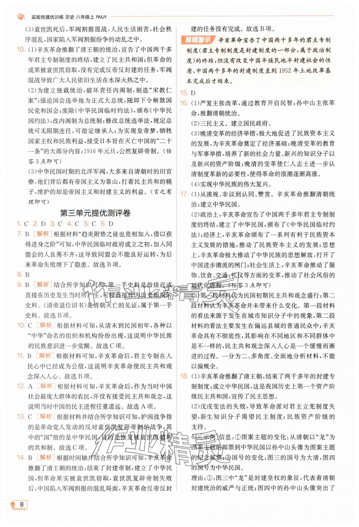 注:目前有些书本章节名称可能整理的还不是很完善,但都是按照顺序排列的,请同学们按照顺序仔细查找。练习册 2025年实验班提优训练八年级历史上册人教版 答案主要是用来给同学们做完题方便对答案用的,请勿直接抄袭。