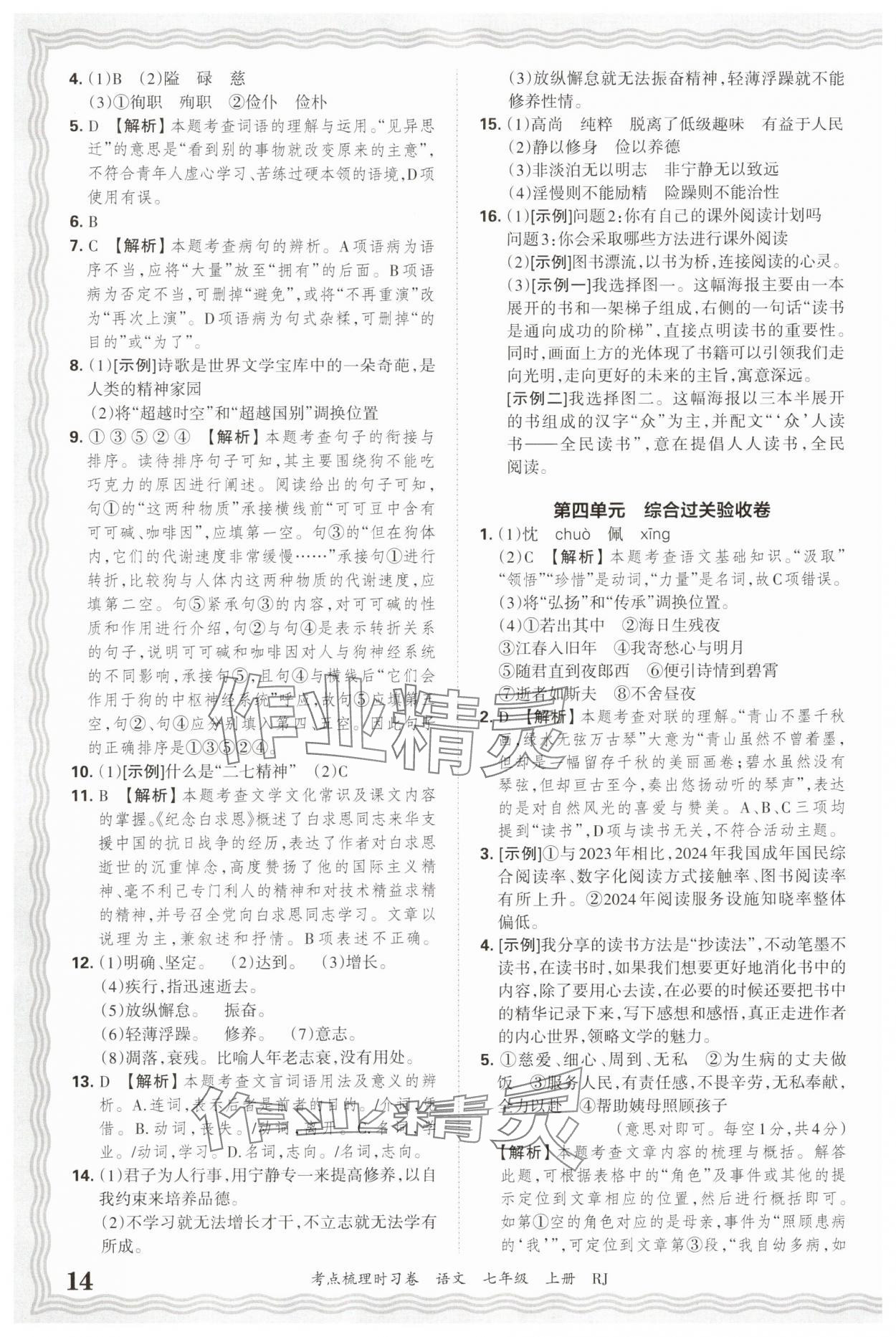 注:目前有些书本章节名称可能整理的还不是很完善,但都是按照顺序排列的,请同学们按照顺序仔细查找。练习册 2025年王朝霞考点梳理时习卷七年级语文上册人教版 答案主要是用来给同学们做完题方便对答案用的,请勿直接抄袭。