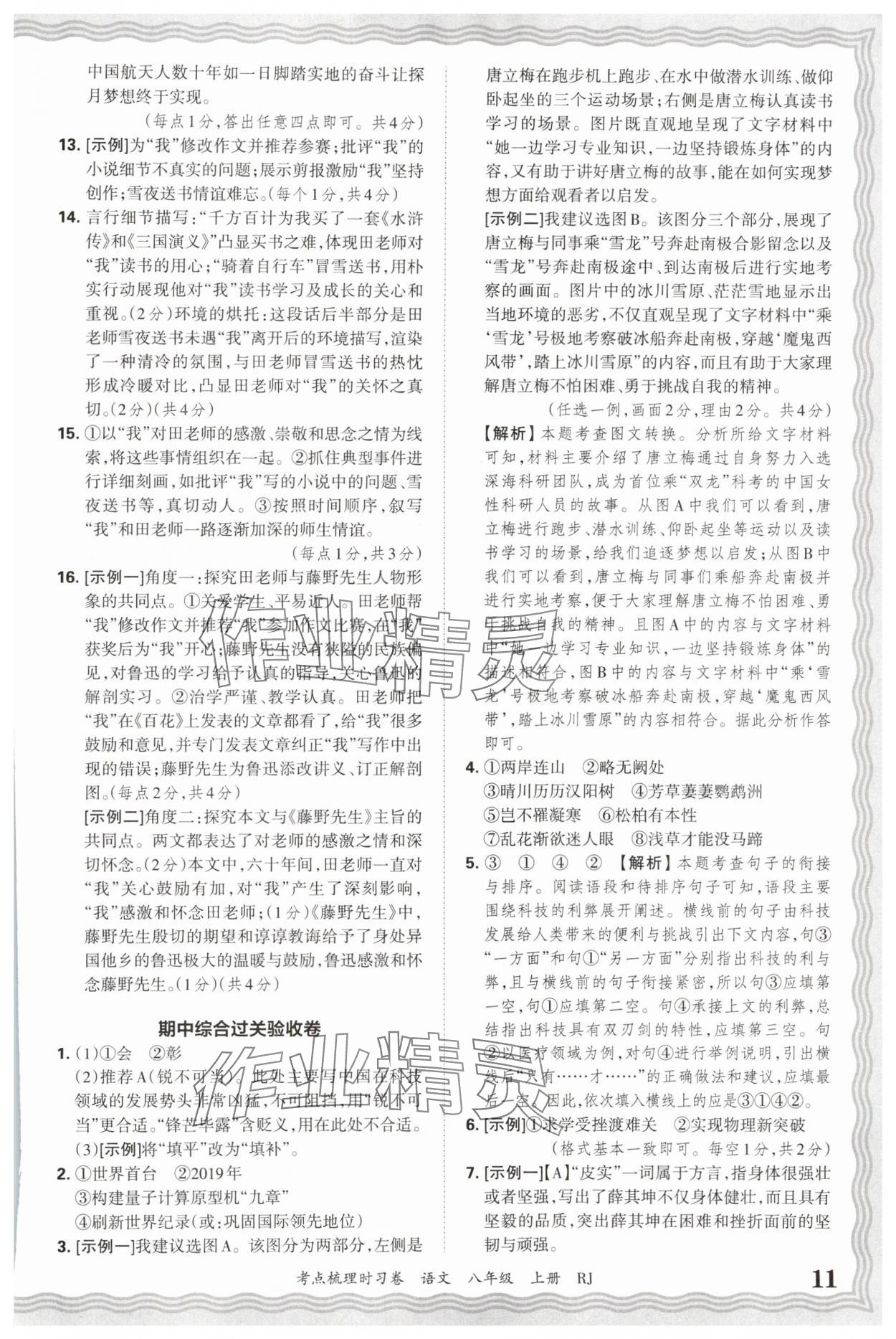 2025年王朝霞考点梳理时习卷八年级语文上册人教版