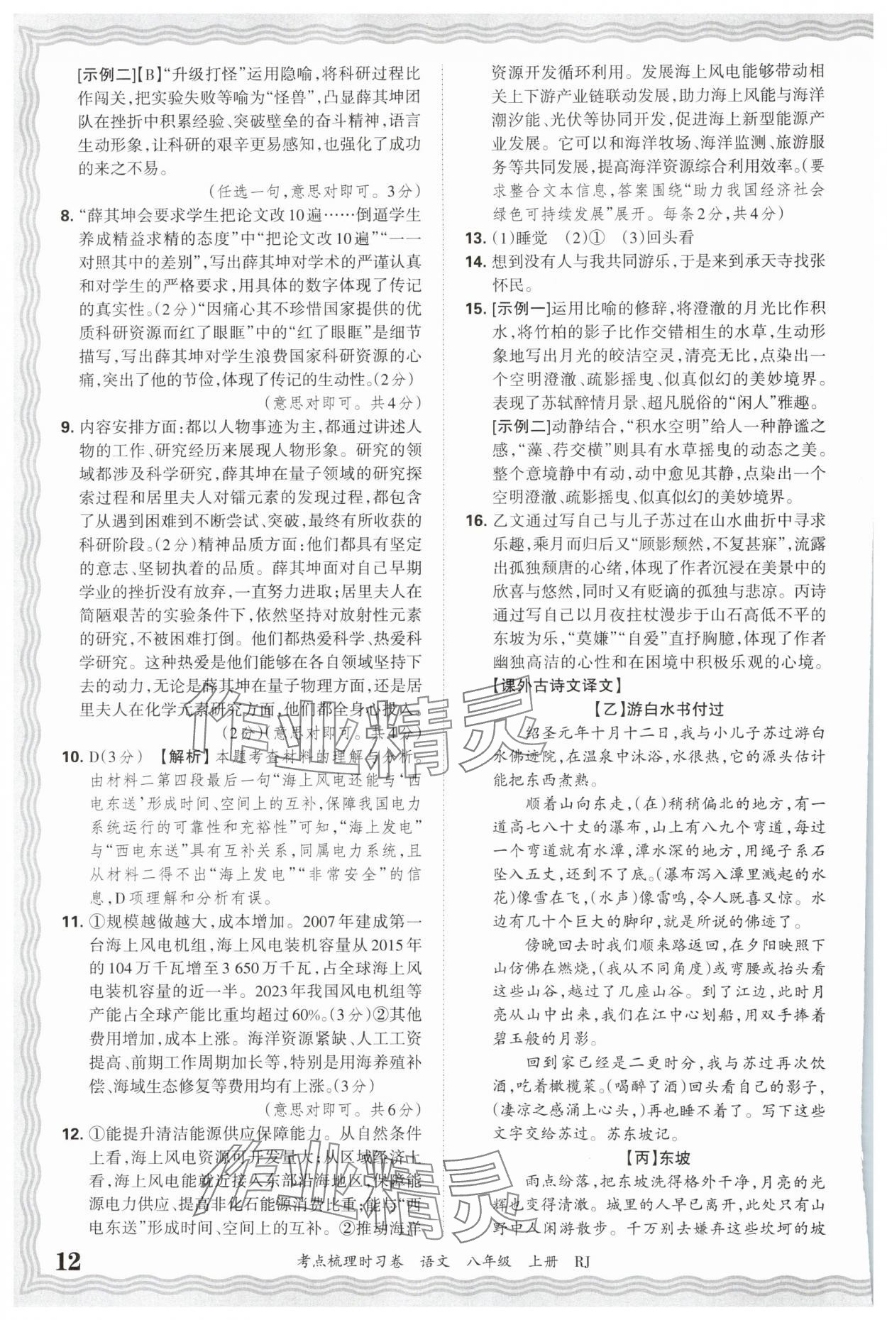 2025年王朝霞考点梳理时习卷八年级语文上册人教版