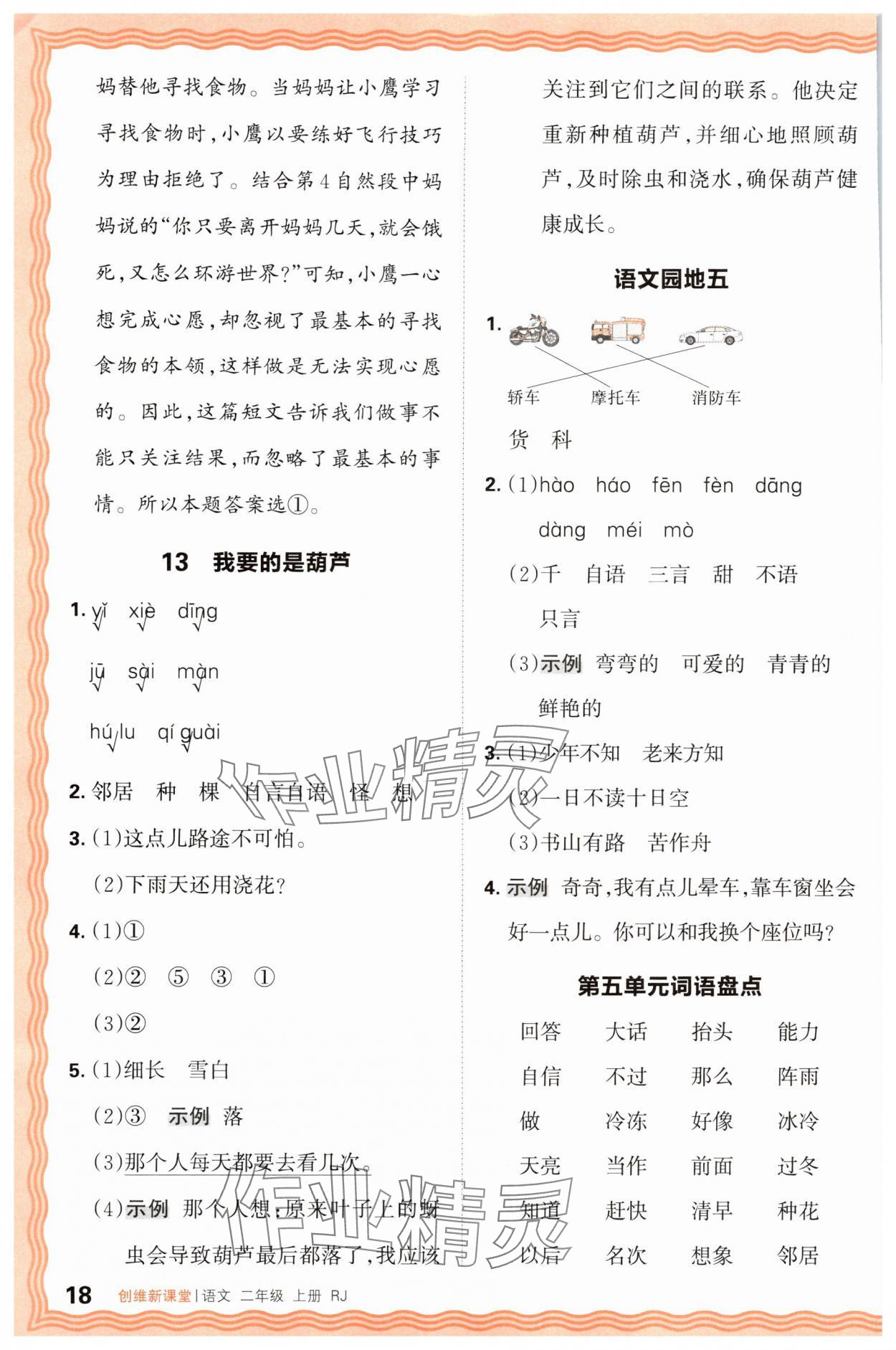 注:目前有些书本章节名称可能整理的还不是很完善,但都是按照顺序排列的,请同学们按照顺序仔细查找。练习册 2025年创维新课堂二年级语文上册人教版 答案主要是用来给同学们做完题方便对答案用的,请勿直接抄袭。