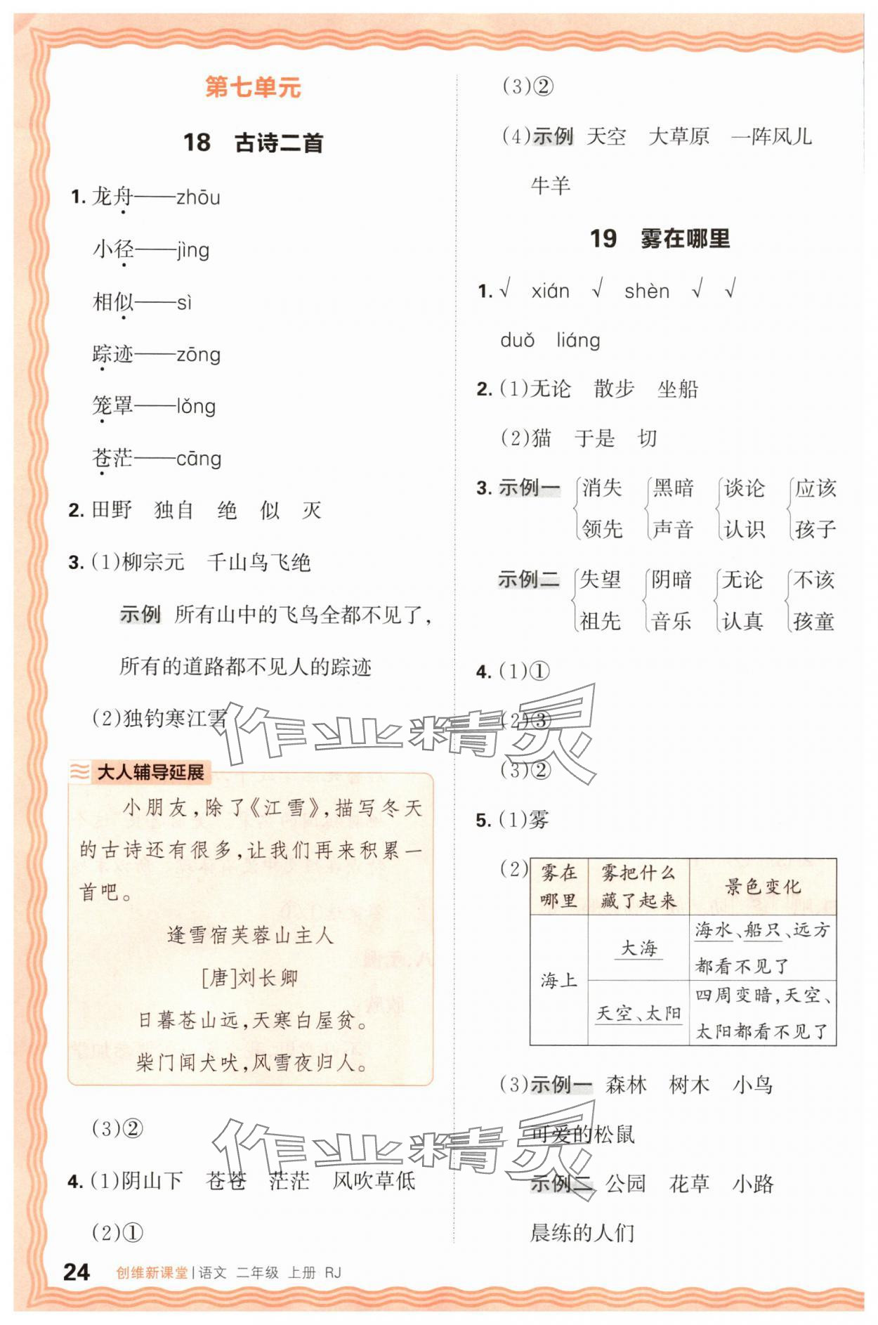 注:目前有些书本章节名称可能整理的还不是很完善,但都是按照顺序排列的,请同学们按照顺序仔细查找。练习册 2025年创维新课堂二年级语文上册人教版 答案主要是用来给同学们做完题方便对答案用的,请勿直接抄袭。