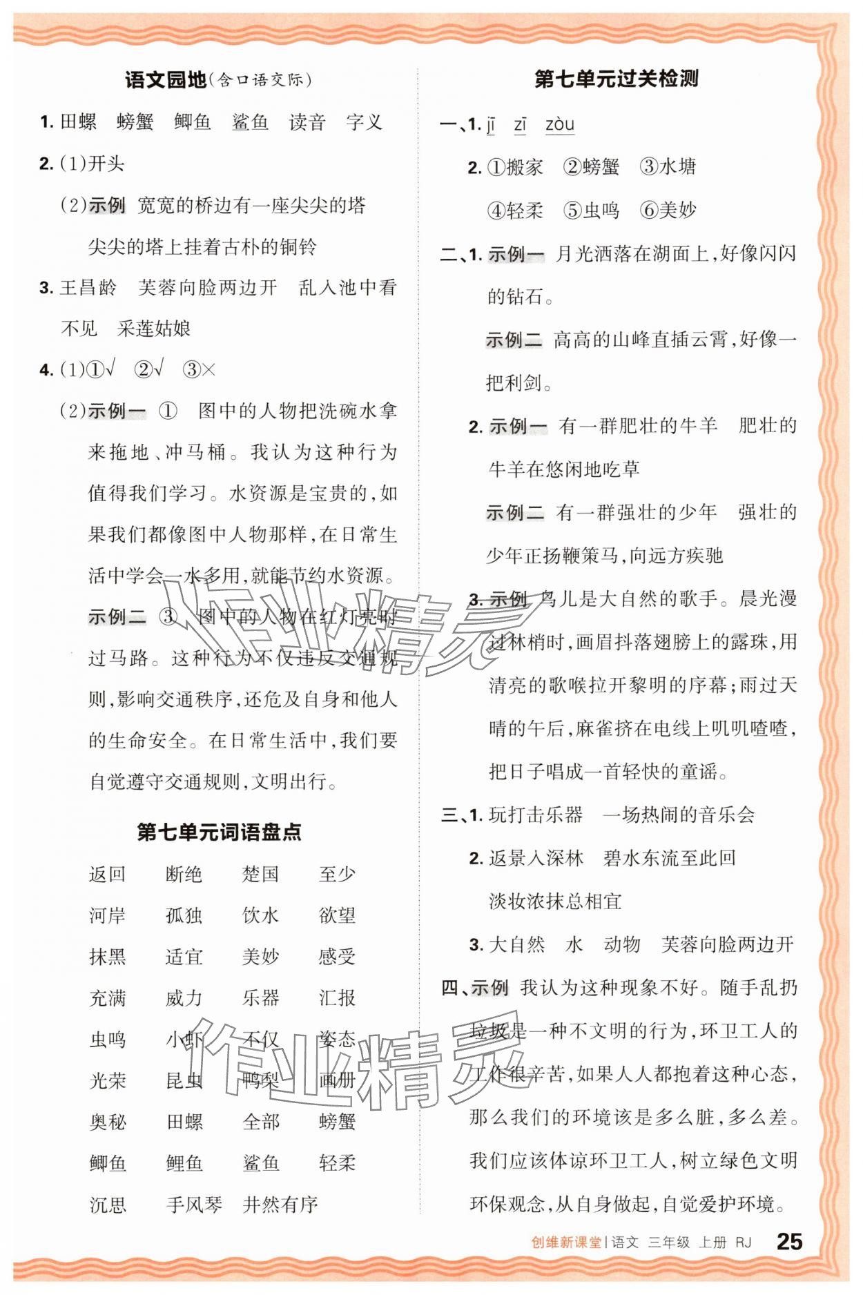 注:目前有些书本章节名称可能整理的还不是很完善,但都是按照顺序排列的,请同学们按照顺序仔细查找。练习册 2025年创维新课堂三年级语文上册人教版 答案主要是用来给同学们做完题方便对答案用的,请勿直接抄袭。