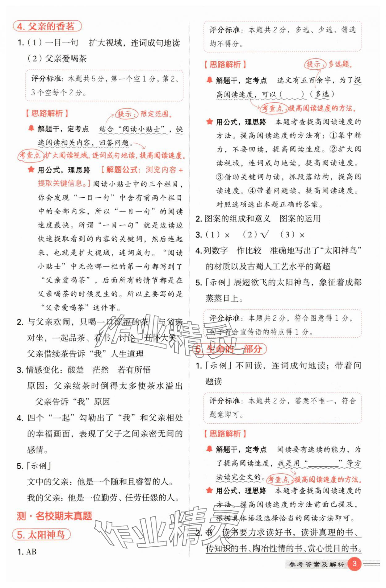 精英家教网> 2025年魔卡阅读目标训练法五年级语文上册人教版 > 第3页 参考答案