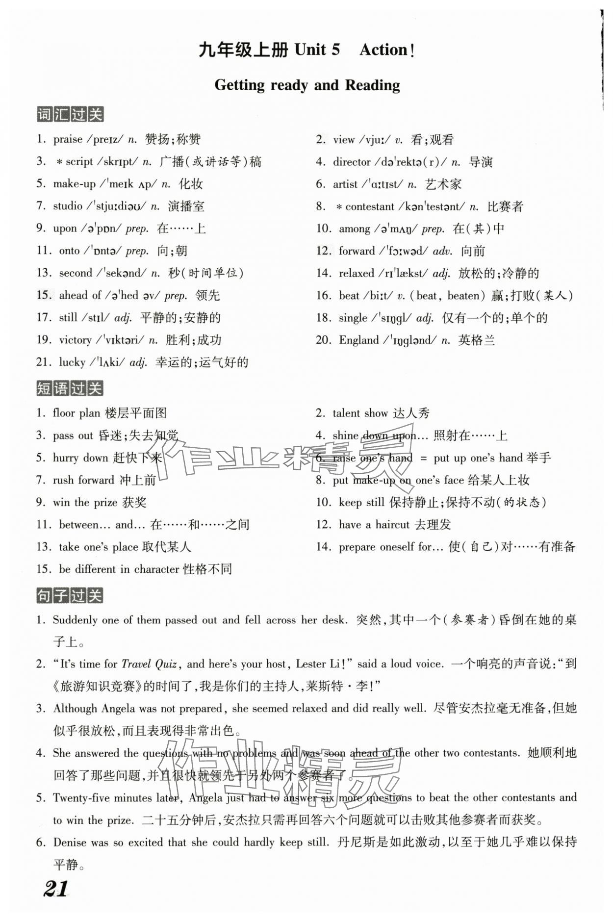 注:目前有些书本章节名称可能整理的还不是很完善,但都是按照顺序排列的,请同学们按照顺序仔细查找。练习册 2025年领跑作业本九年级英语全一册人教版广州专版 答案主要是用来给同学们做完题方便对答案用的,请勿直接抄袭。