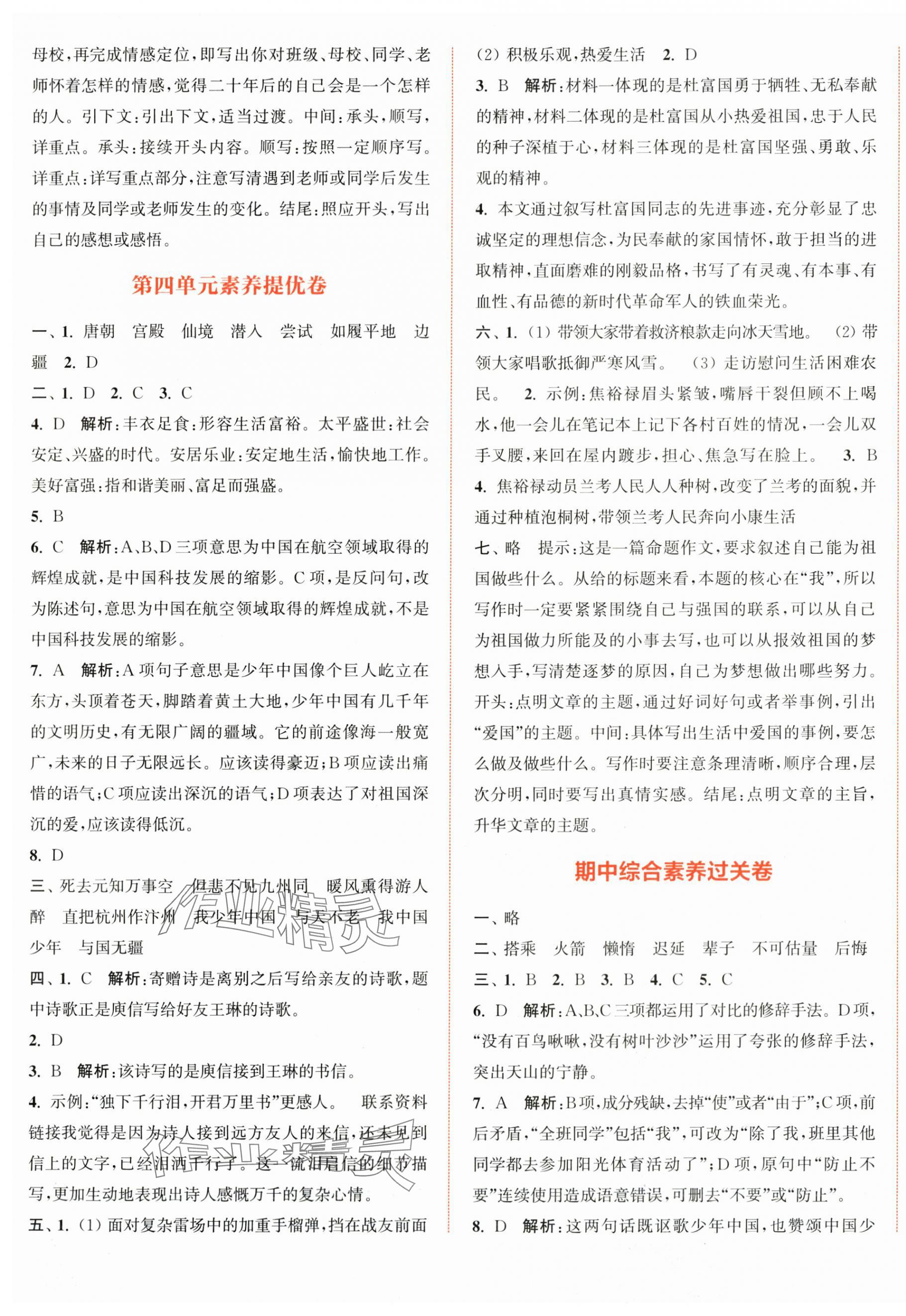 注:目前有些书本章节名称可能整理的还不是很完善,但都是按照顺序排列的,请同学们按照顺序仔细查找。练习册 2025年通成学典非常大试卷五年级语文上册人教版江苏专版 答案主要是用来给同学们做完题方便对答案用的,请勿直接抄袭。