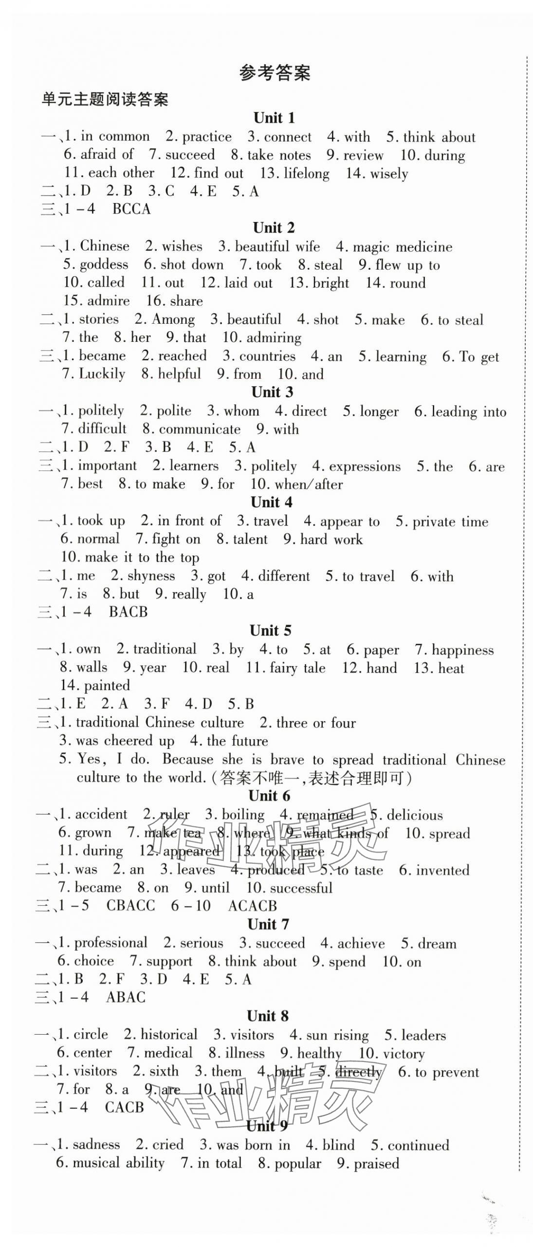 注:目前有些书本章节名称可能整理的还不是很完善,但都是按照顺序排列的,请同学们按照顺序仔细查找。练习册2025年畅行课堂九年级英语全一册人教版贵州专版答案主要是用来给同学们做完题方便对答案用的,请勿直接抄袭。