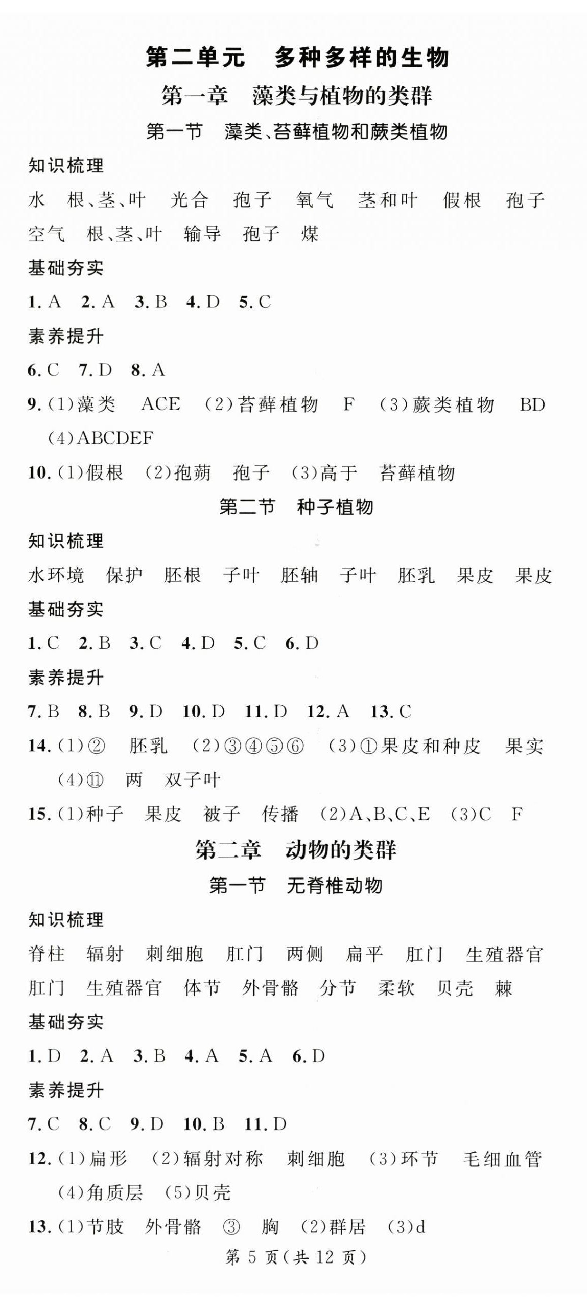 注:目前有些书本章节名称可能整理的还不是很完善,但都是按照顺序排列的,请同学们按照顺序仔细查找。练习册 2025年名师测控七年级生物上册人教版陕西专版 答案主要是用来给同学们做完题方便对答案用的,请勿直接抄袭。