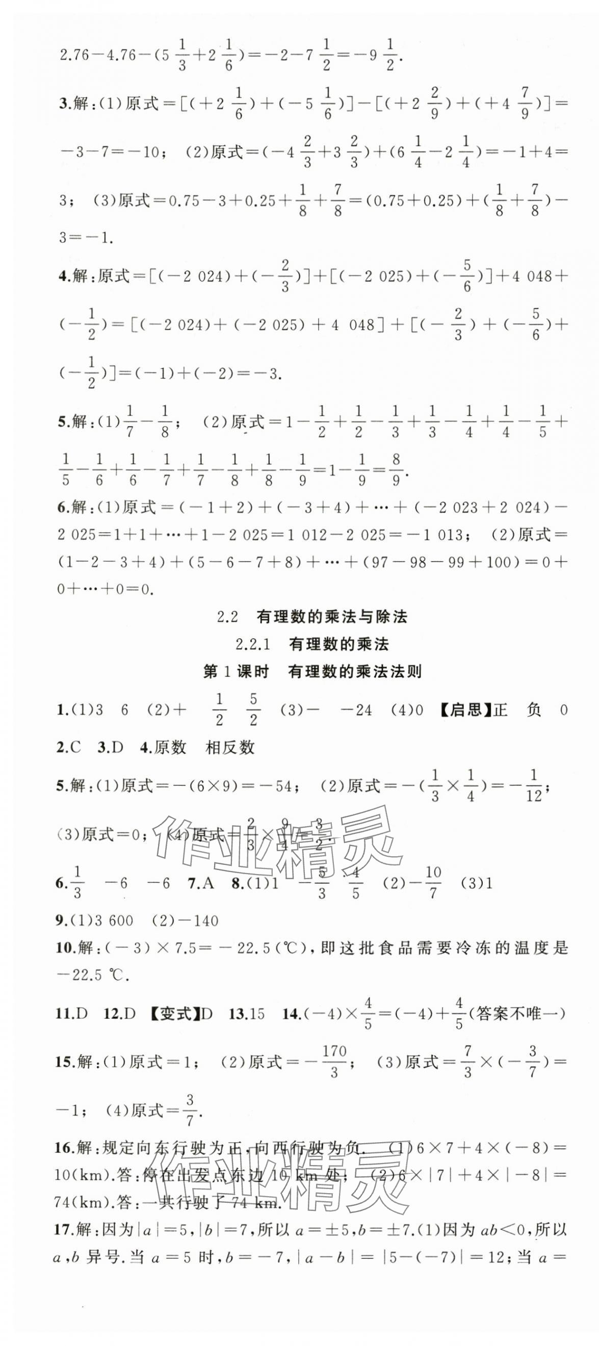 精英家教网> 2025年同步作业本练闯考七年级数学上册人教版安徽专版 > 第7页 参考答案