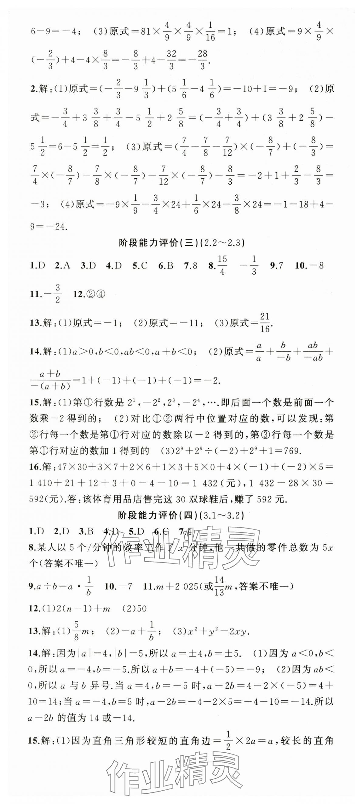 2025年同步作业本练闯考七年级数学上册人教版安徽专版