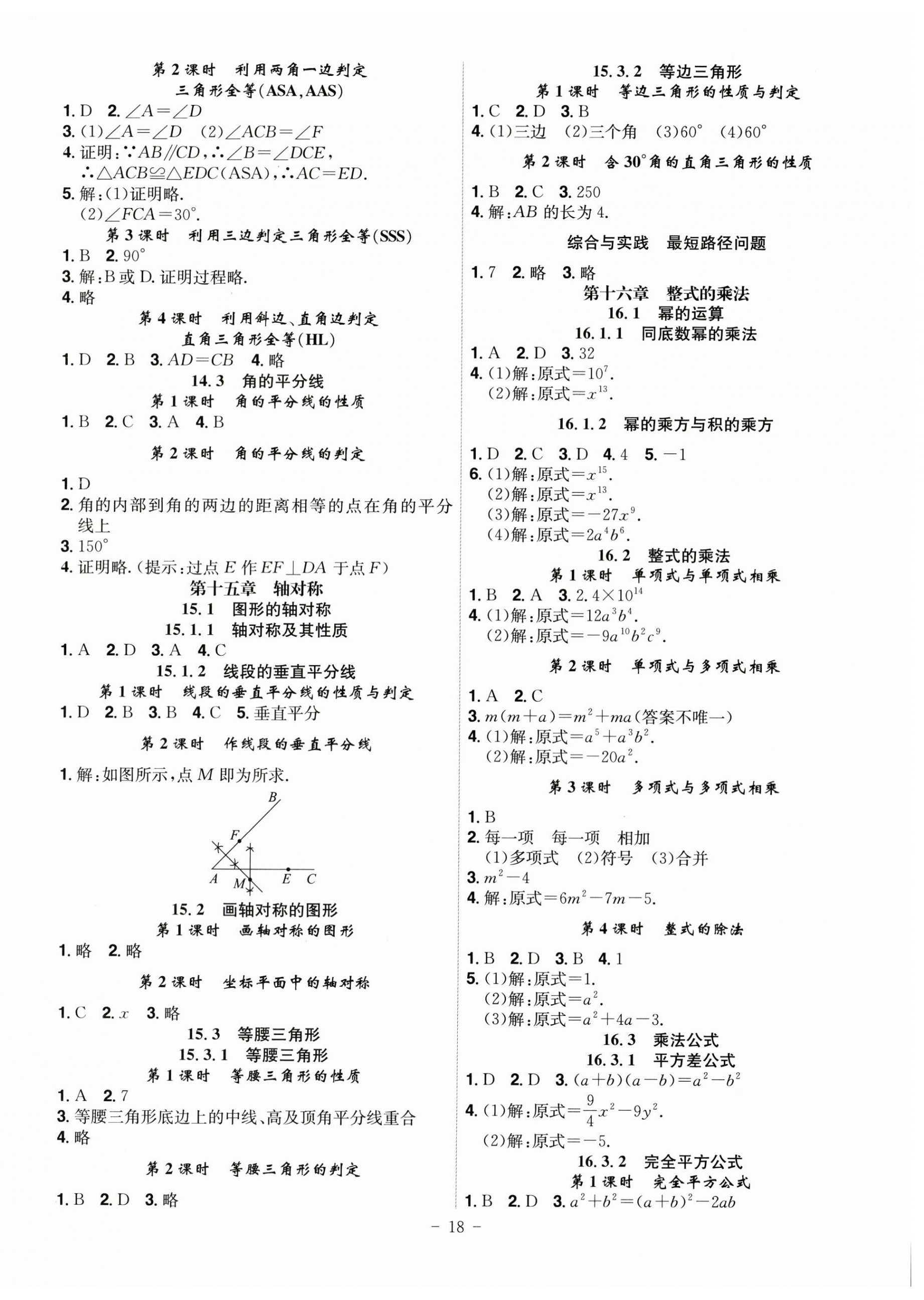 注:目前有些书本章节名称可能整理的还不是很完善,但都是按照顺序排列的,请同学们按照顺序仔细查找。练习册 2025年课时A计划八年级数学上册人教版 答案主要是用来给同学们做完题方便对答案用的,请勿直接抄袭。