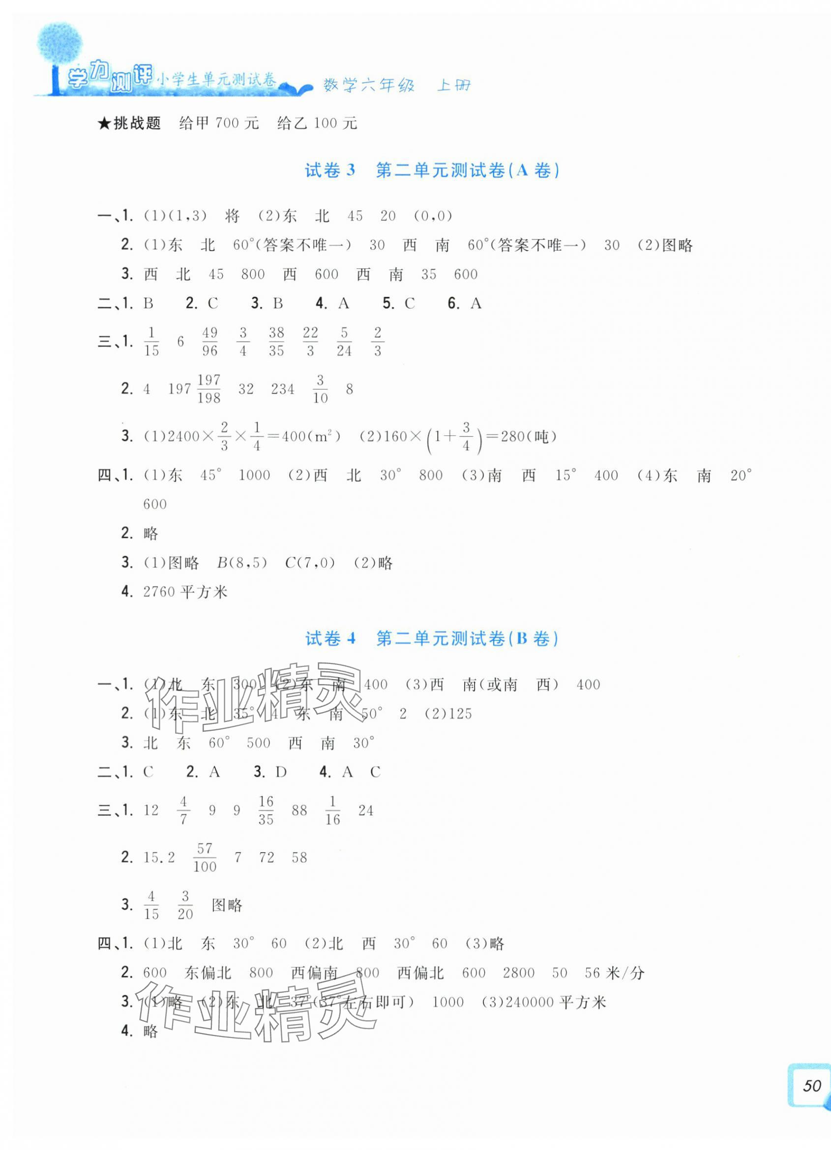 2025年学力测评小学生单元测试卷六年级数学上册人教版 参考答案第3页