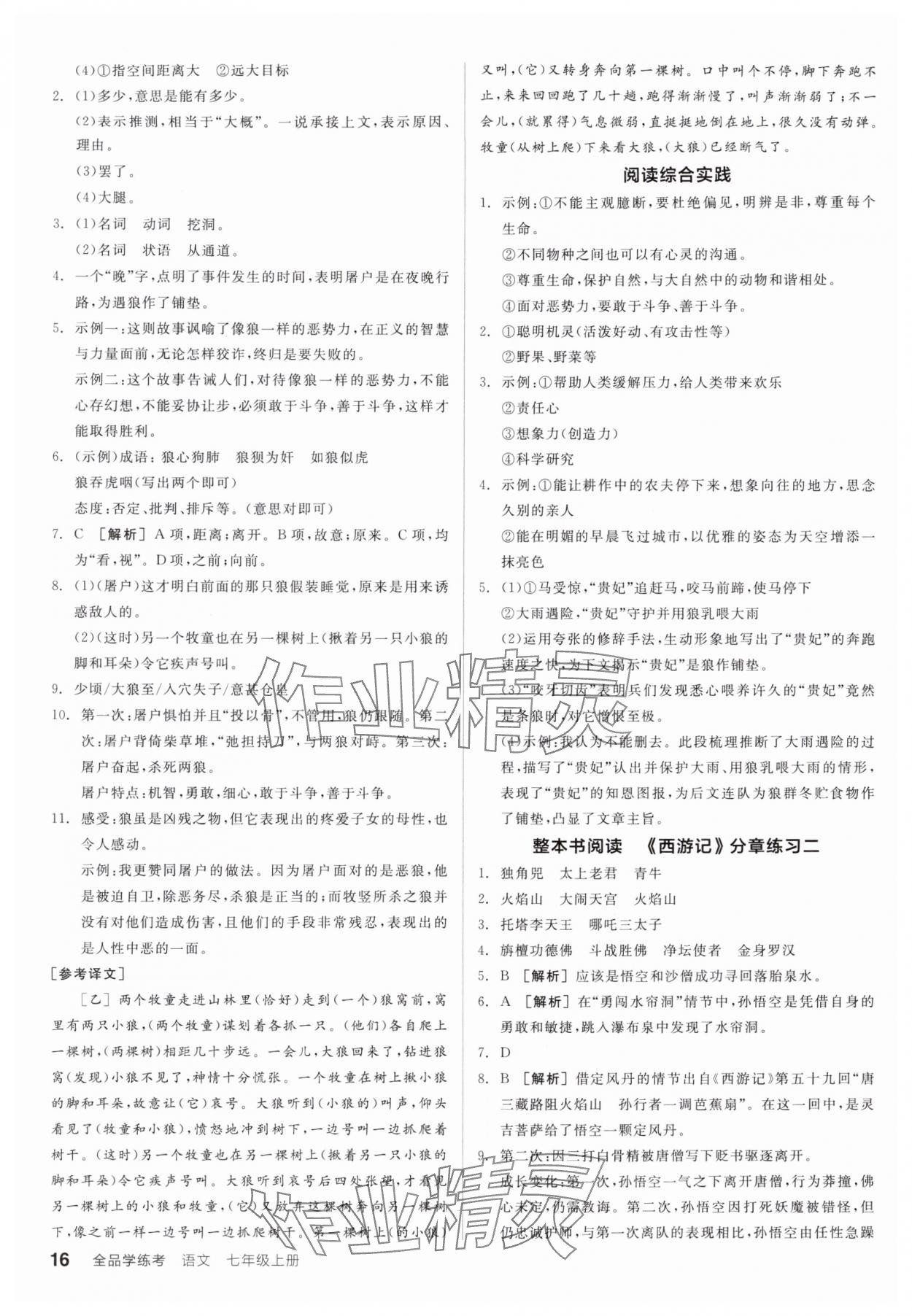 注:目前有些书本章节名称可能整理的还不是很完善,但都是按照顺序排列的,请同学们按照顺序仔细查找。练习册 2025年全品学练考七年级语文上册人教版广东专版 答案主要是用来给同学们做完题方便对答案用的,请勿直接抄袭。
