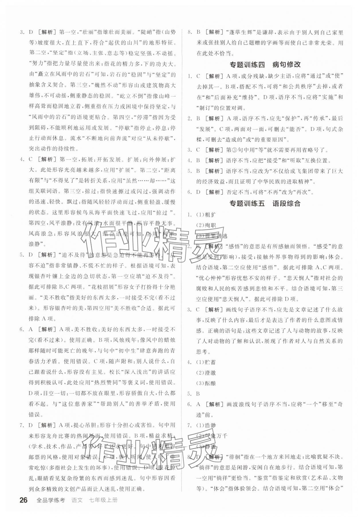 注:目前有些书本章节名称可能整理的还不是很完善,但都是按照顺序排列的,请同学们按照顺序仔细查找。练习册 2025年全品学练考七年级语文上册人教版广东专版 答案主要是用来给同学们做完题方便对答案用的,请勿直接抄袭。