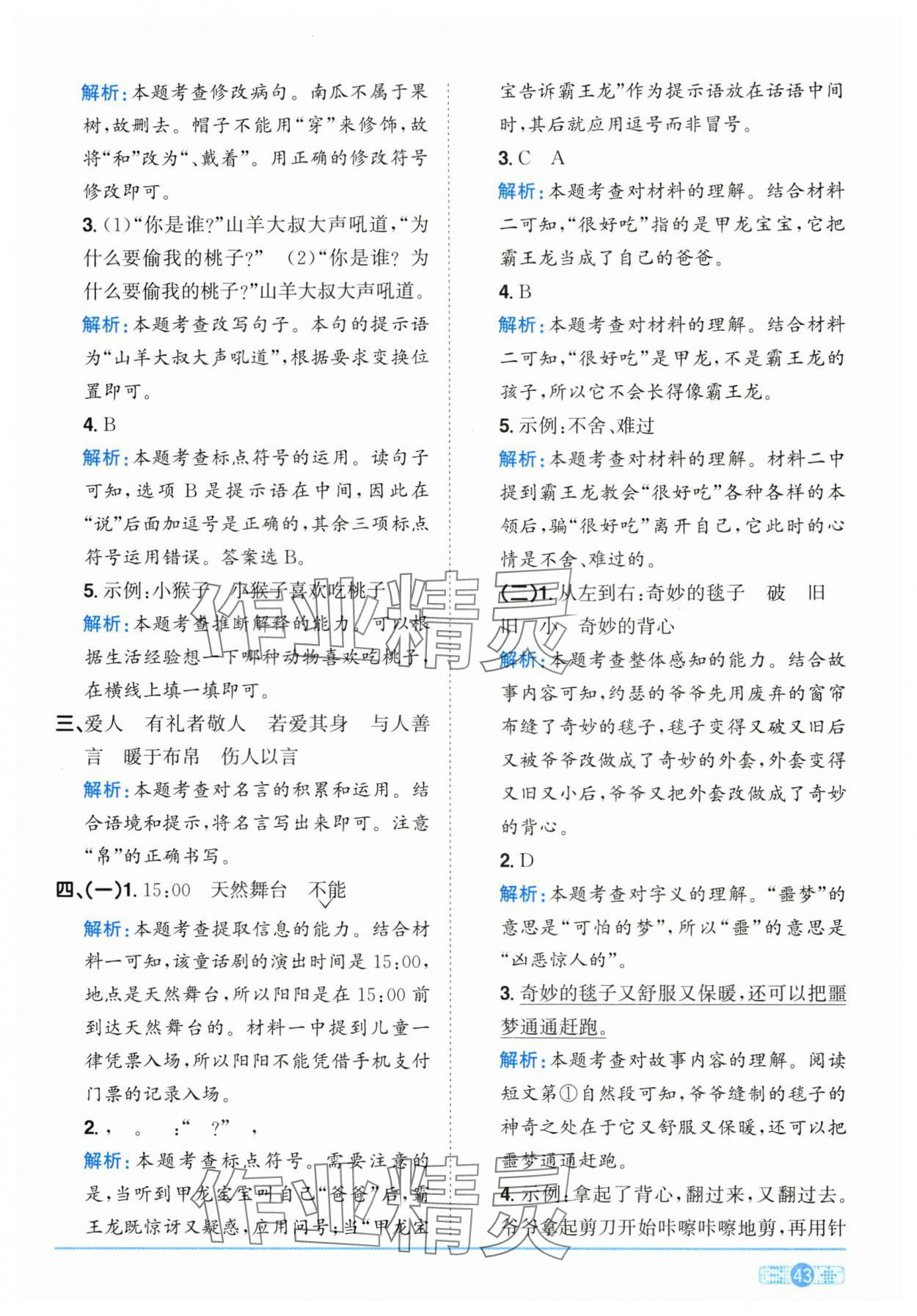 注:目前有些书本章节名称可能整理的还不是很完善,但都是按照顺序排列的,请同学们按照顺序仔细查找。练习册 2025年阳光同学课时全优训练三年级语文上册人教版浙江专版 答案主要是用来给同学们做完题方便对答案用的,请勿直接抄袭。