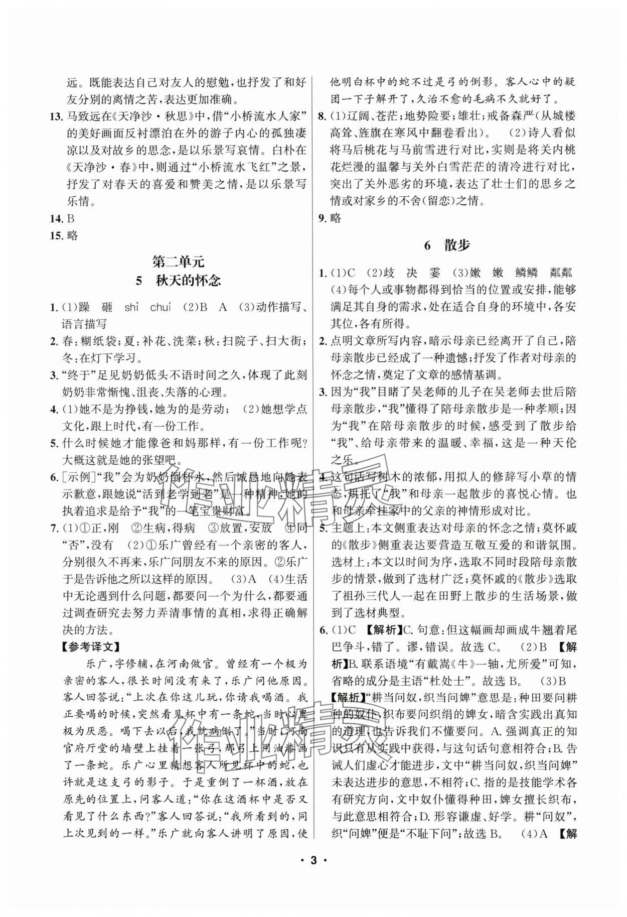 2025年习题e百课时训练七年级语文上册人教版 参考答案第3页