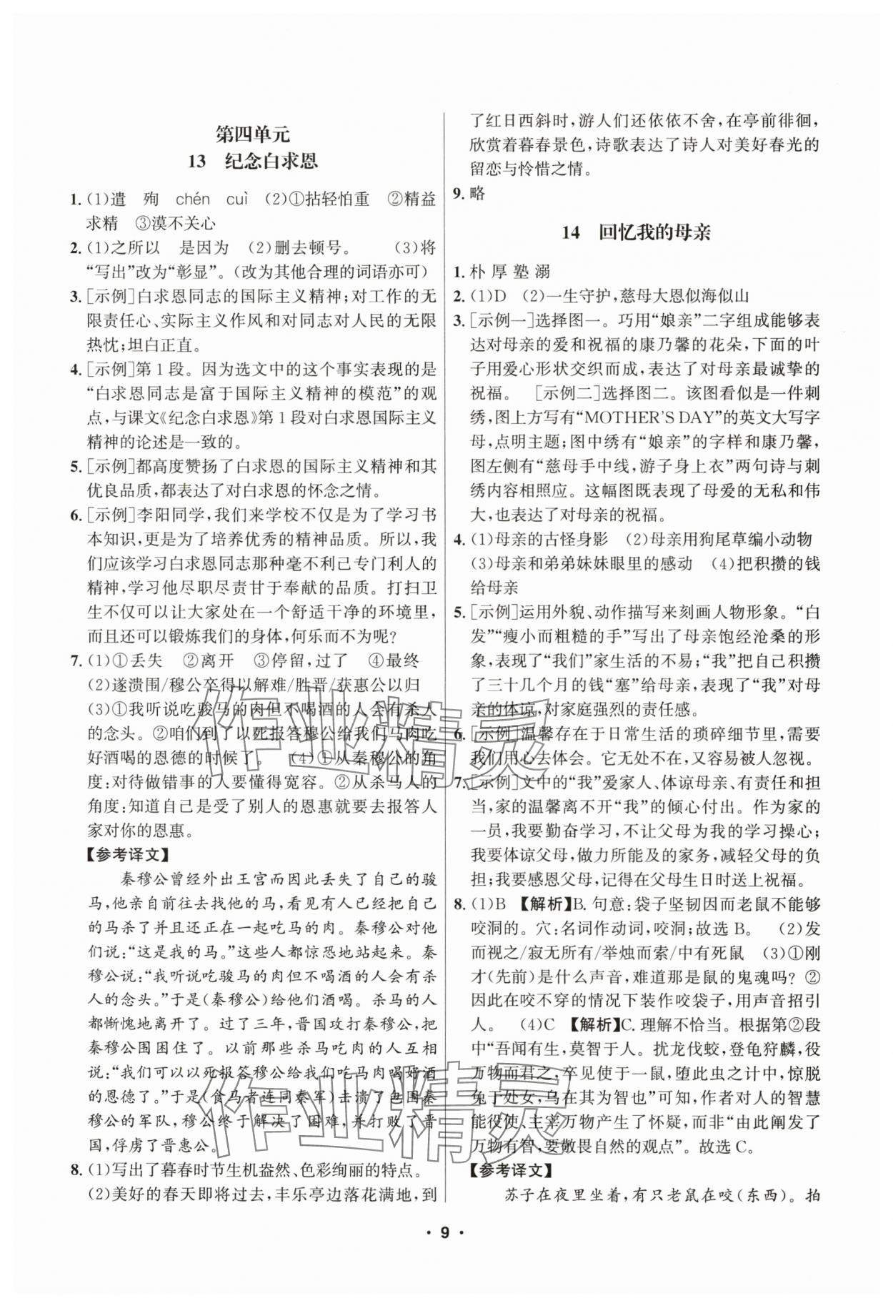 2025年习题e百课时训练七年级语文上册人教版 参考答案第9页
