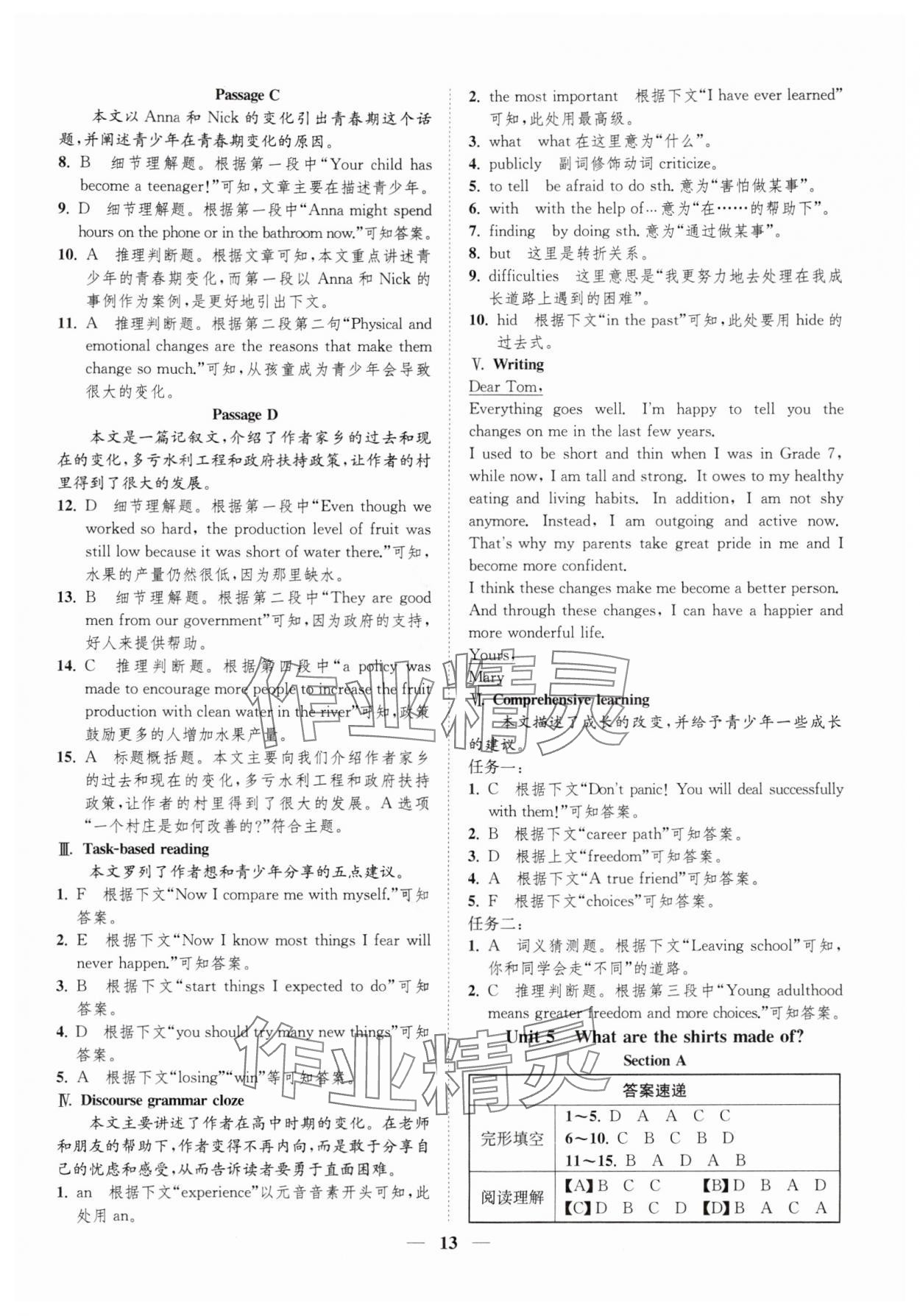 注:目前有些书本章节名称可能整理的还不是很完善,但都是按照顺序排列的,请同学们按照顺序仔细查找。练习册 2025年一阅优品尖子生培优教程九年级英语全一册人教版 答案主要是用来给同学们做完题方便对答案用的,请勿直接抄袭。