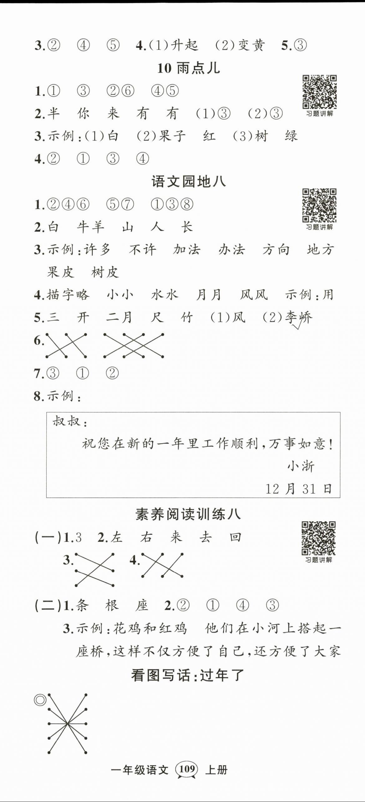注:目前有些书本章节名称可能整理的还不是很完善,但都是按照顺序排列的,请同学们按照顺序仔细查找。练习册 2025年状元成才路创优作业100分一年级语文上册人教版浙江专版 答案主要是用来给同学们做完题方便对答案用的,请勿直接抄袭。