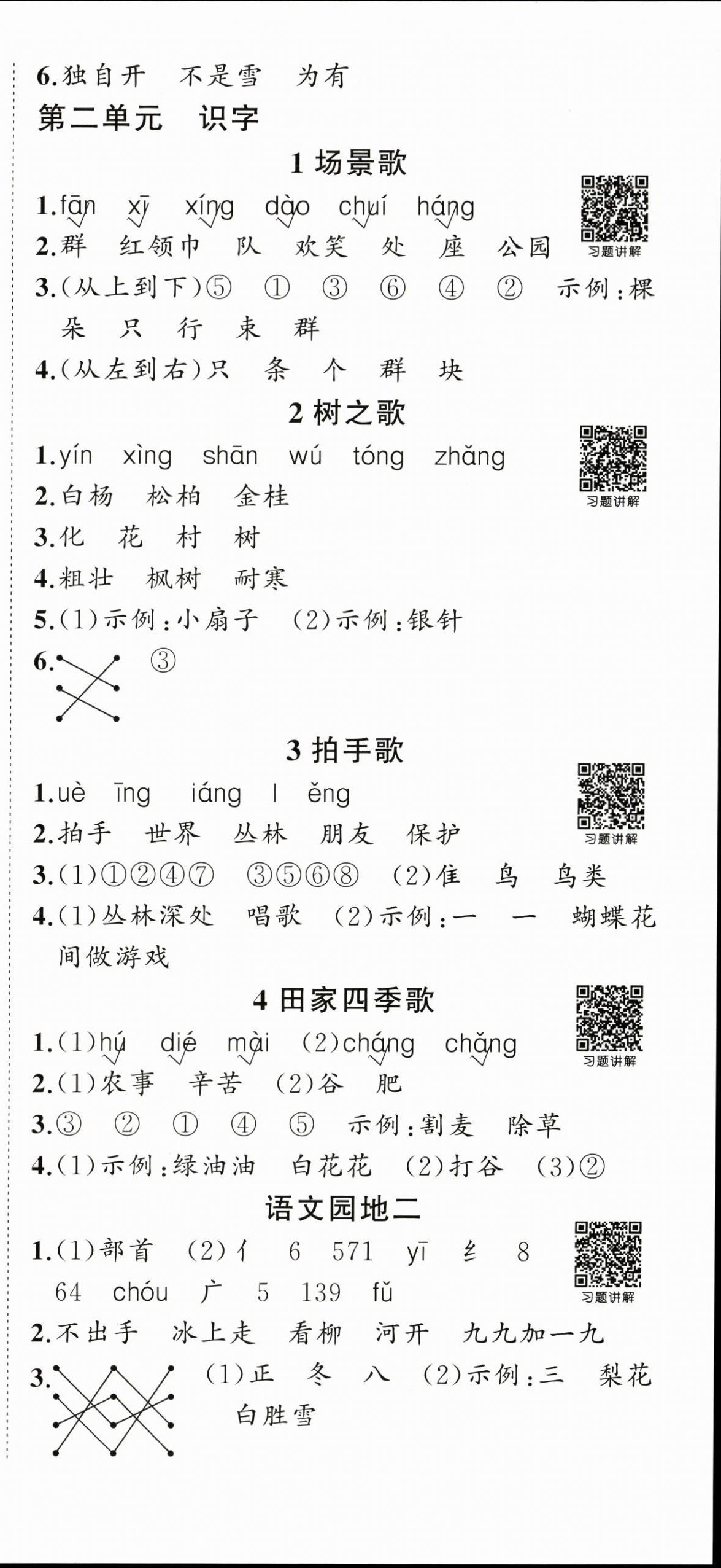 注:目前有些书本章节名称可能整理的还不是很完善,但都是按照顺序排列的,请同学们按照顺序仔细查找。练习册2025年状元成才路创优作业100分二年级语文上册人教版浙江专版答案主要是用来给同学们做完题方便对答案用的,请勿直接抄袭。