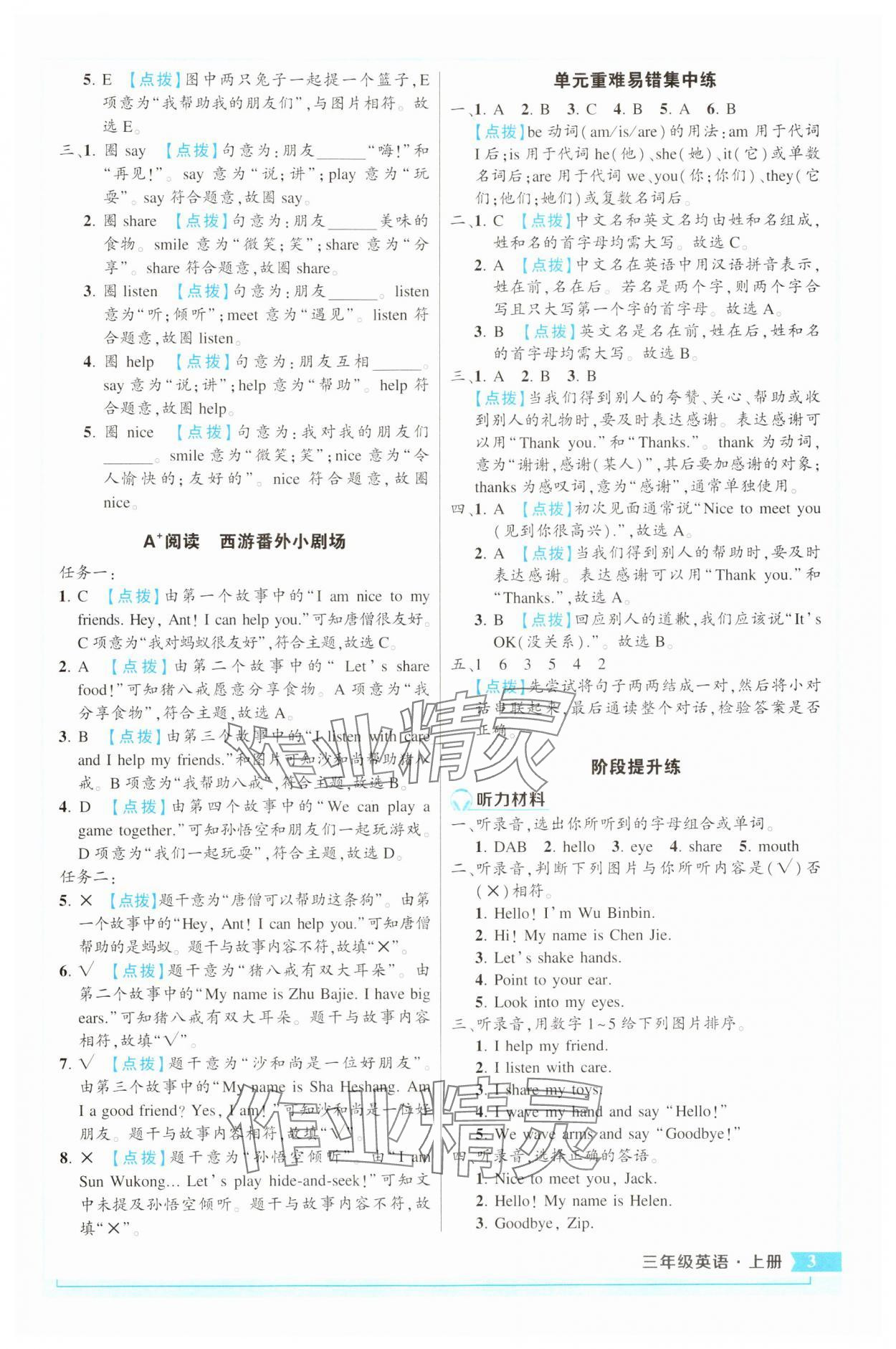 2025年黄冈状元成才路状元作业本三年级英语上册人教版 参考答案第3页