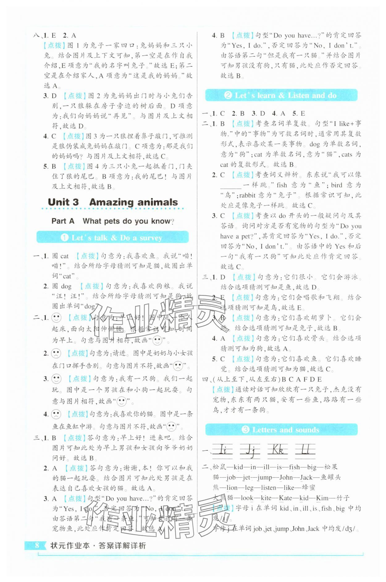 2025年黄冈状元成才路状元作业本三年级英语上册人教版 参考答案第8页