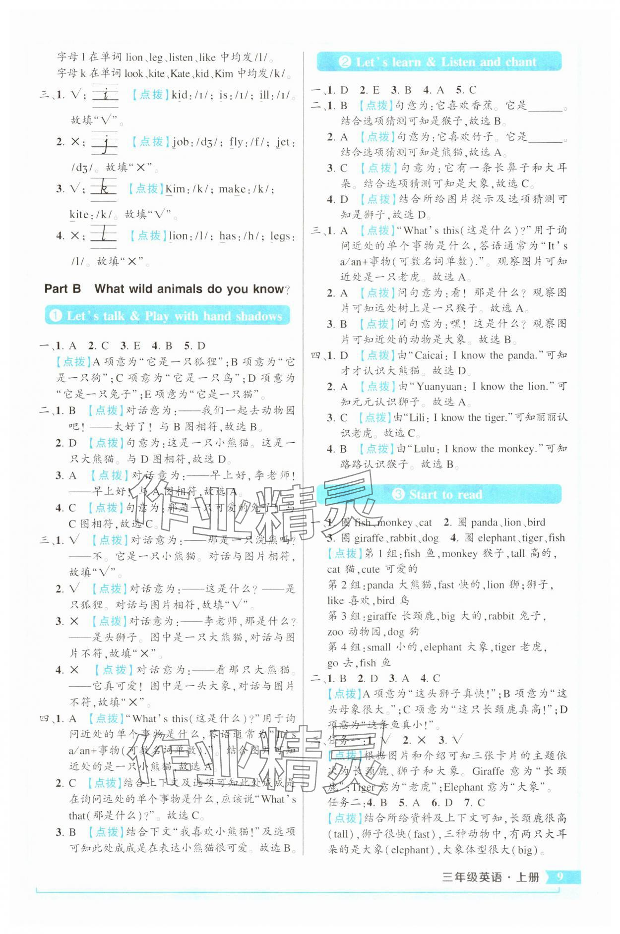 2025年黄冈状元成才路状元作业本三年级英语上册人教版 参考答案第9页
