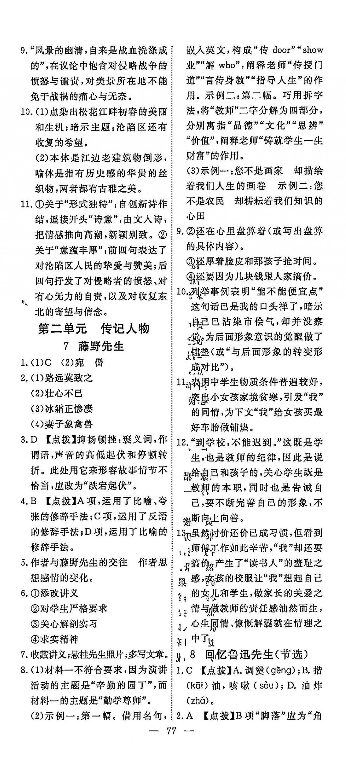 精英家教网> 2025年351高效课堂导学案八年级语文上册人教版 > 第8页 参考答案