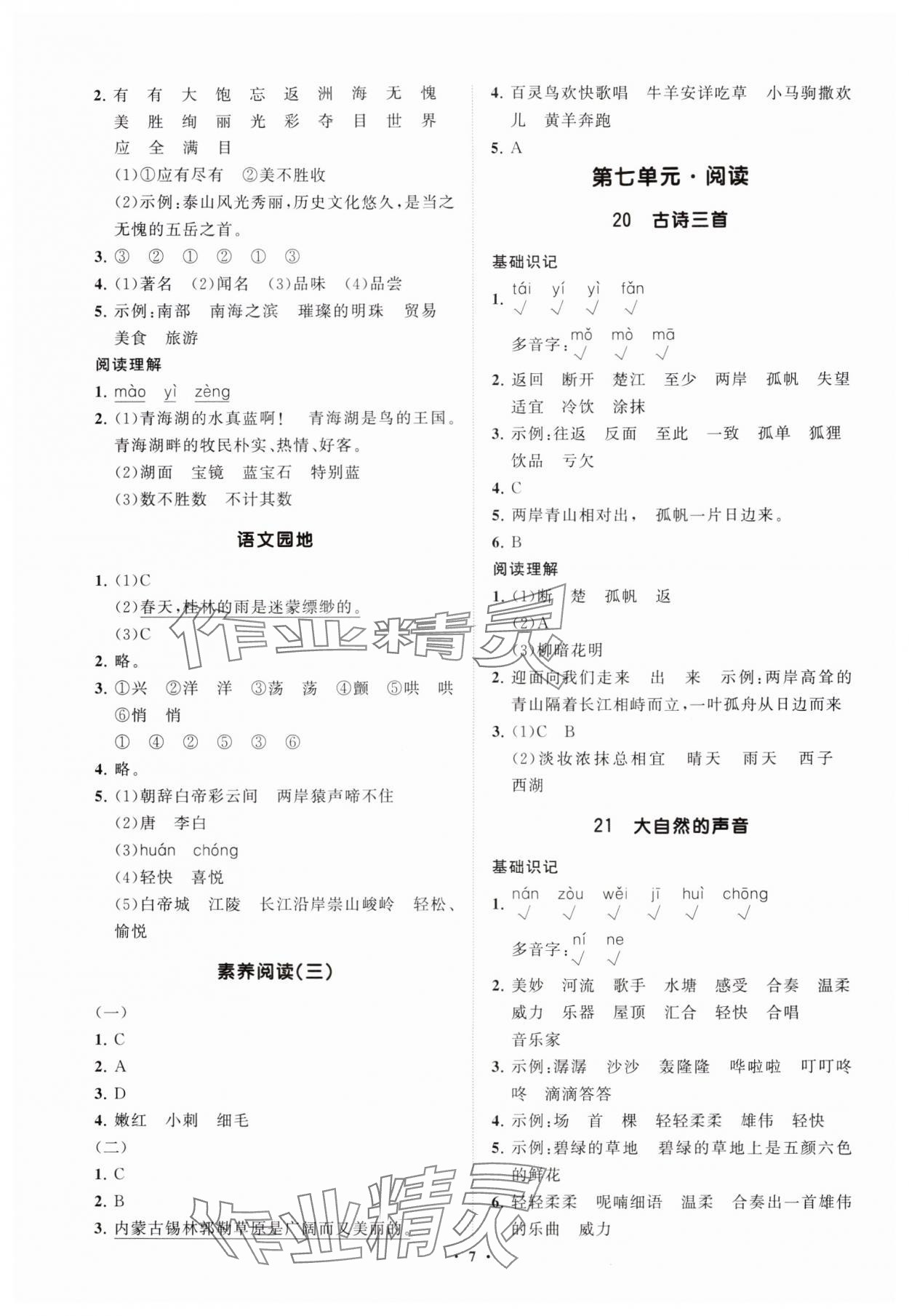 注:目前有些书本章节名称可能整理的还不是很完善,但都是按照顺序排列的,请同学们按照顺序仔细查找。练习册 2025年同步练习册分层指导三年级语文上册人教版 答案主要是用来给同学们做完题方便对答案用的,请勿直接抄袭。