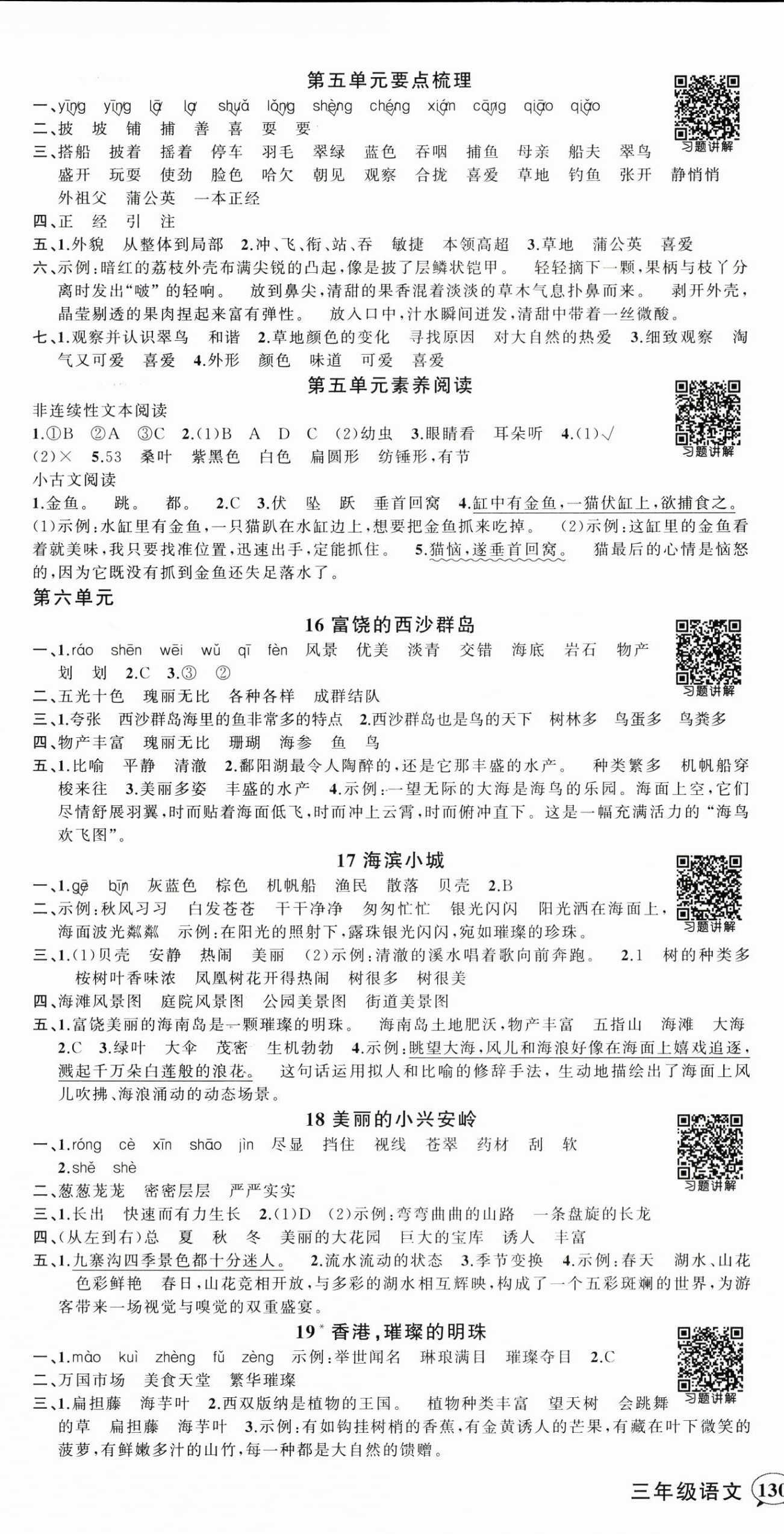 注:目前有些书本章节名称可能整理的还不是很完善,但都是按照顺序排列的,请同学们按照顺序仔细查找。练习册 2025年状元成才路创优作业100分三年级语文上册人教版浙江专版 答案主要是用来给同学们做完题方便对答案用的,请勿直接抄袭。