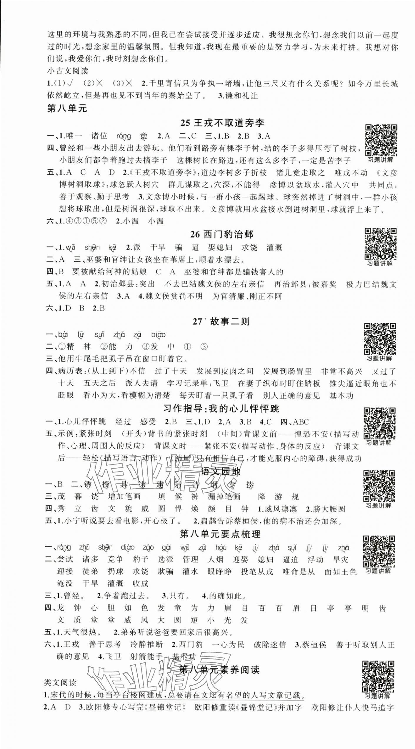 注:目前有些书本章节名称可能整理的还不是很完善,但都是按照顺序排列的,请同学们按照顺序仔细查找。练习册 2025年状元成才路创优作业100分四年级语文上册人教版浙江专版 答案主要是用来给同学们做完题方便对答案用的,请勿直接抄袭。