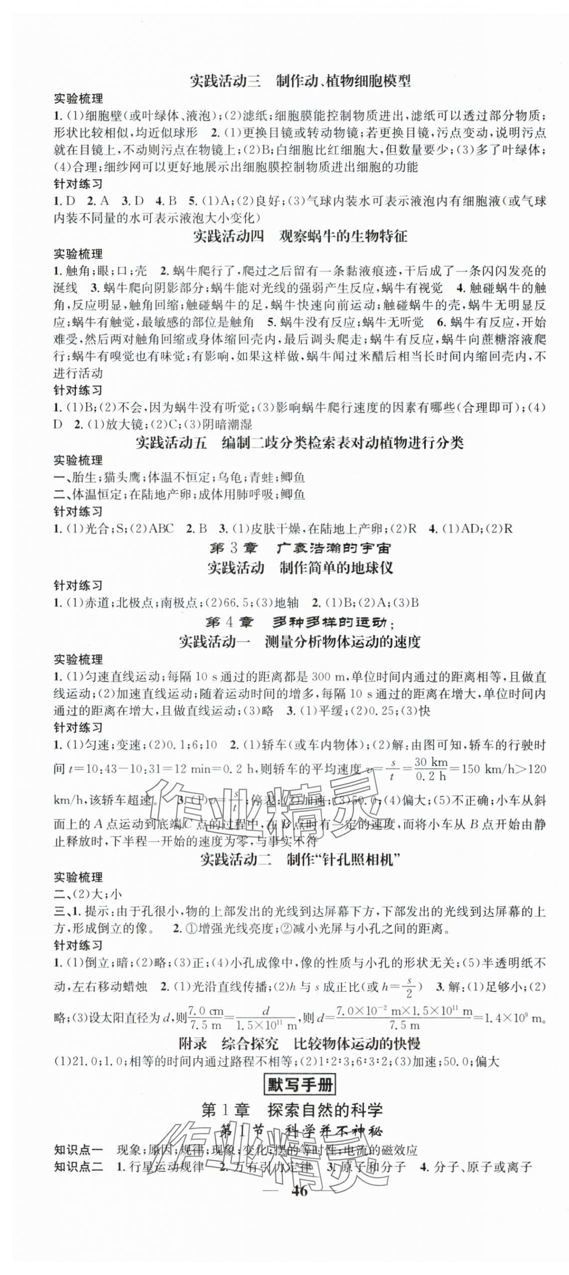 注:目前有些书本章节名称可能整理的还不是很完善,但都是按照顺序排列的,请同学们按照顺序仔细查找。练习册 2025年智慧学堂七年级科学上册浙教版浙江专版 答案主要是用来给同学们做完题方便对答案用的,请勿直接抄袭。