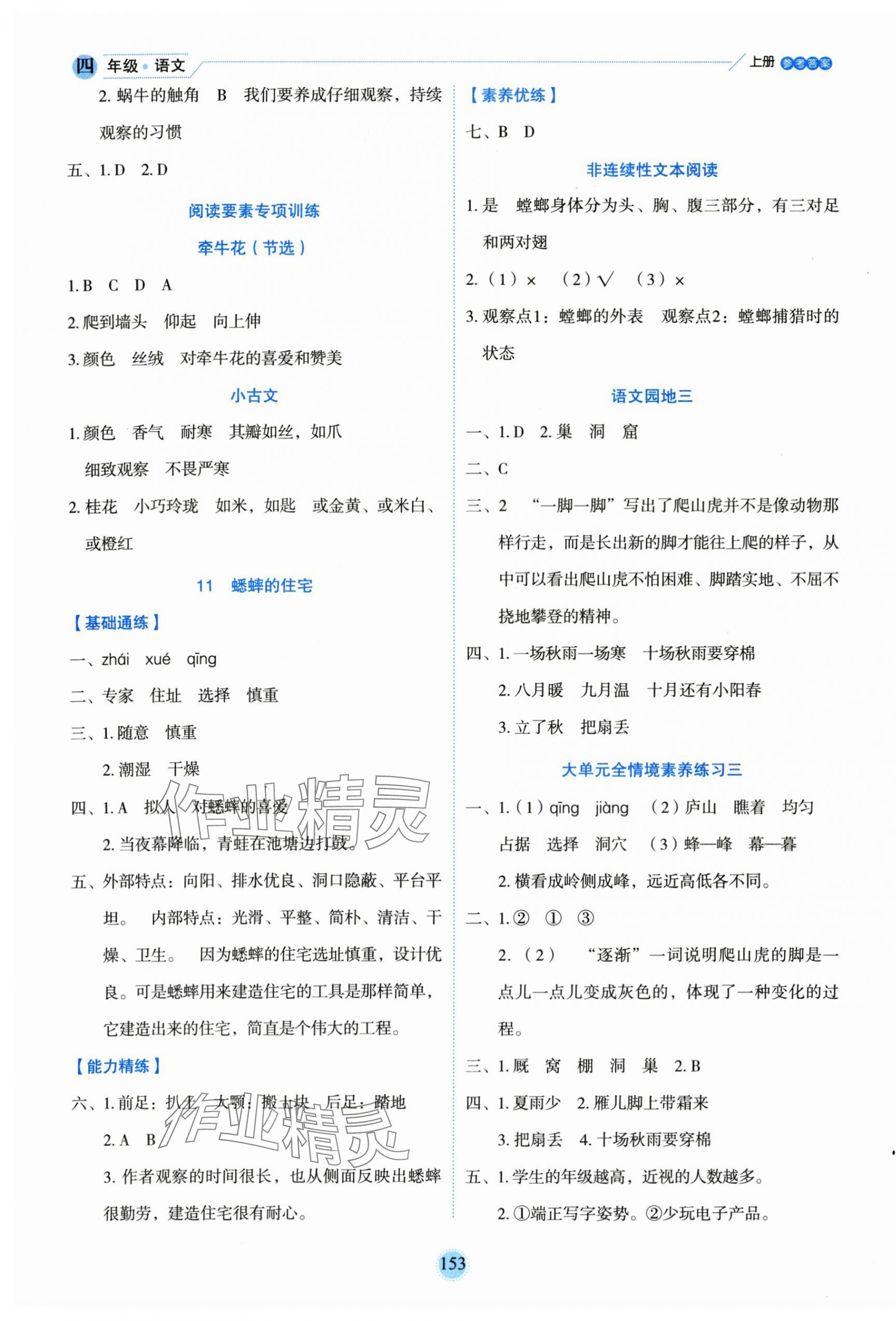 注:目前有些书本章节名称可能整理的还不是很完善,但都是按照顺序排列的,请同学们按照顺序仔细查找。练习册 2025年优秀生作业本四年级语文上册人教版 答案主要是用来给同学们做完题方便对答案用的,请勿直接抄袭。
